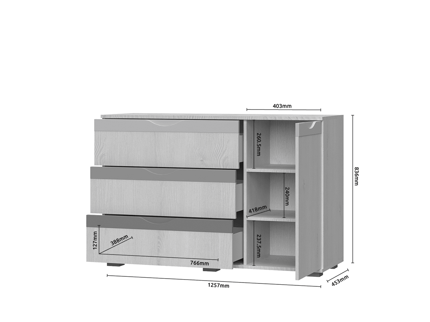 – Komoda za dečiju sobu, iz kolekcije JOY, sa jednim krilom i tri fioke