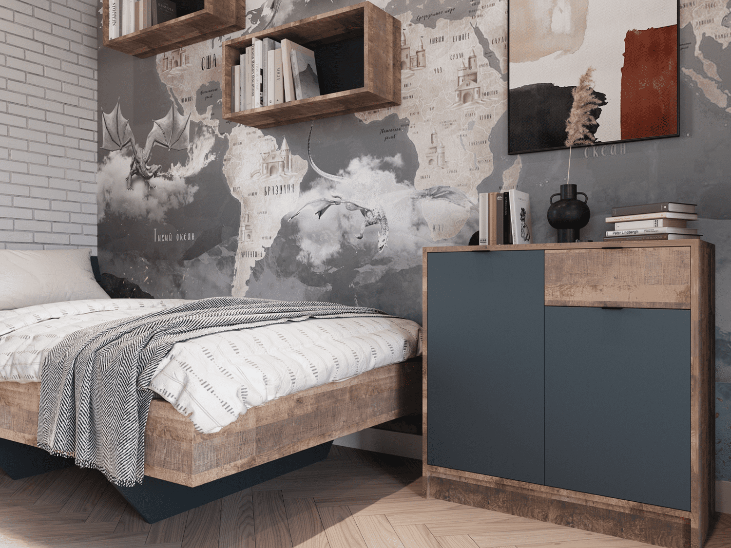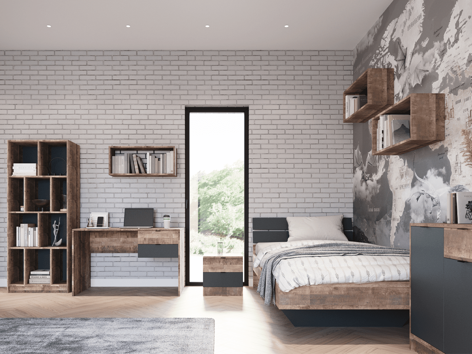 – Modularna dečija soba Logan u kombinaciji dekora grange oak i antracit
