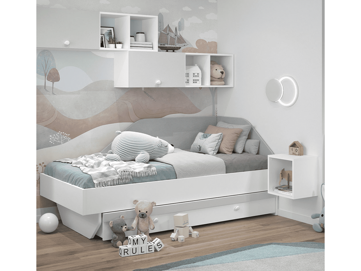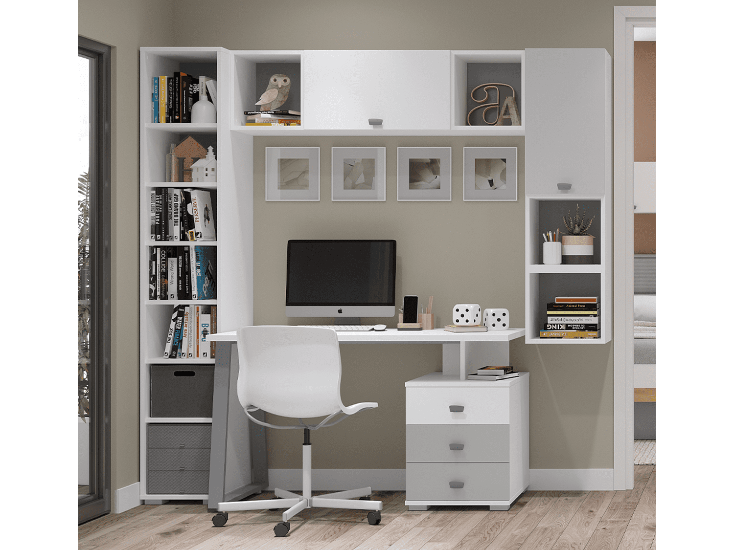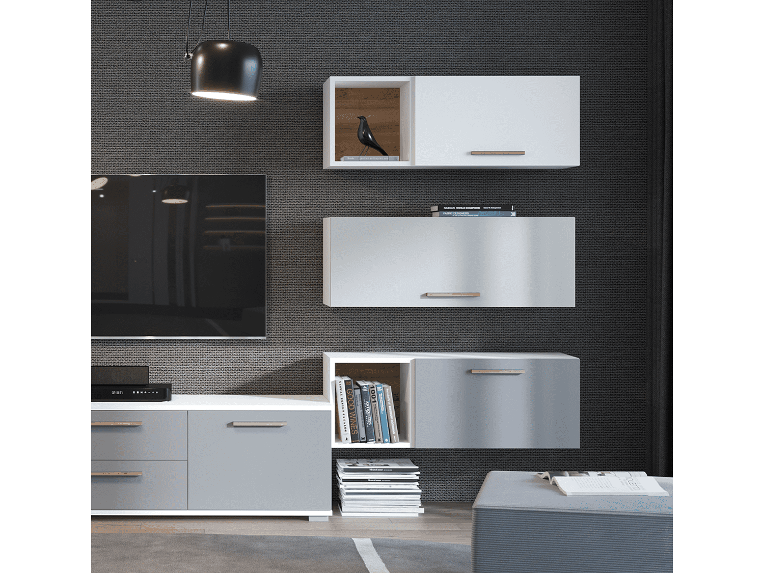 – Korpus kantovan sa zadnje strane debljine 18mm lakiran UV lakom sa soft mat efektom u beloj boji