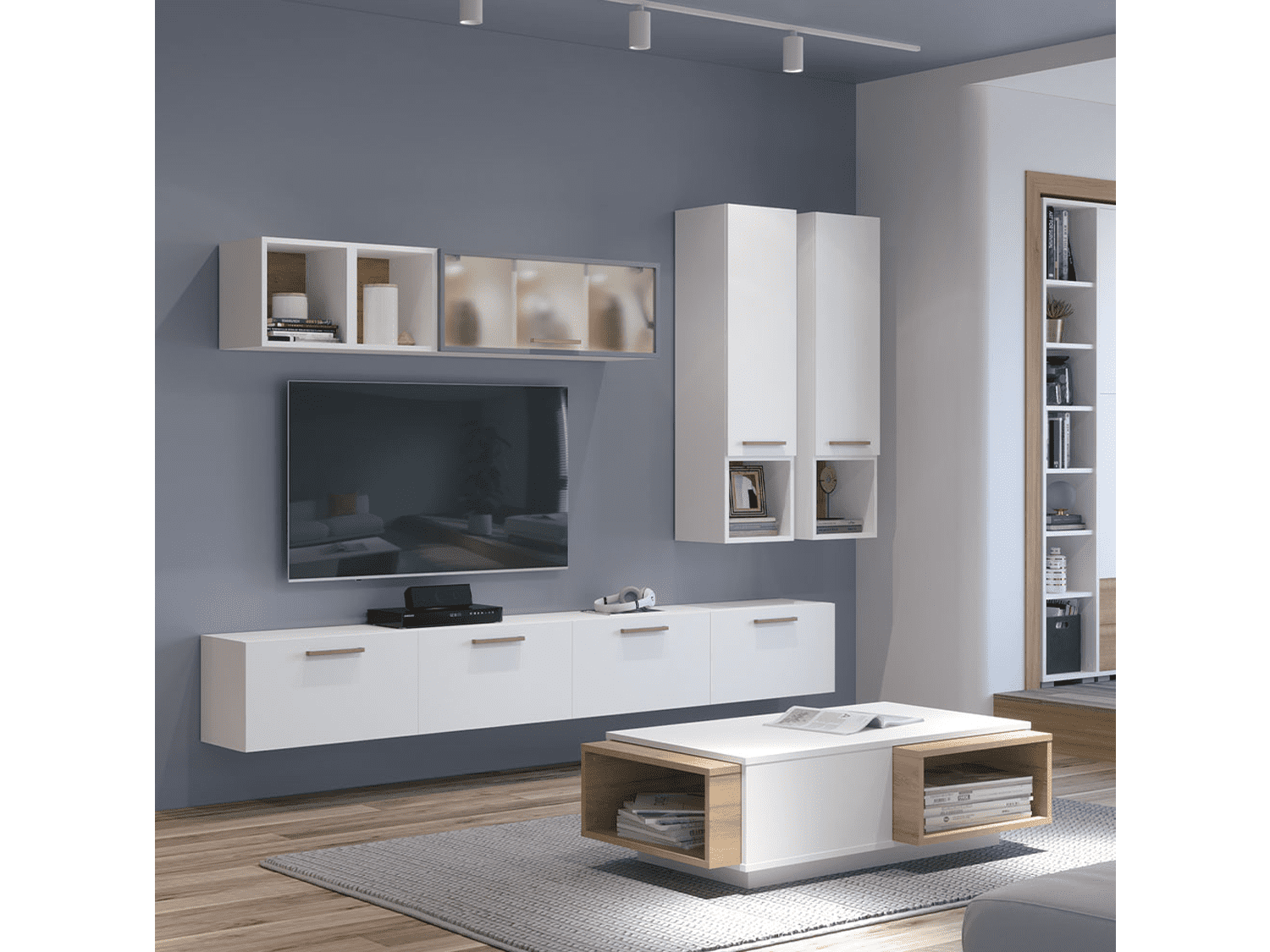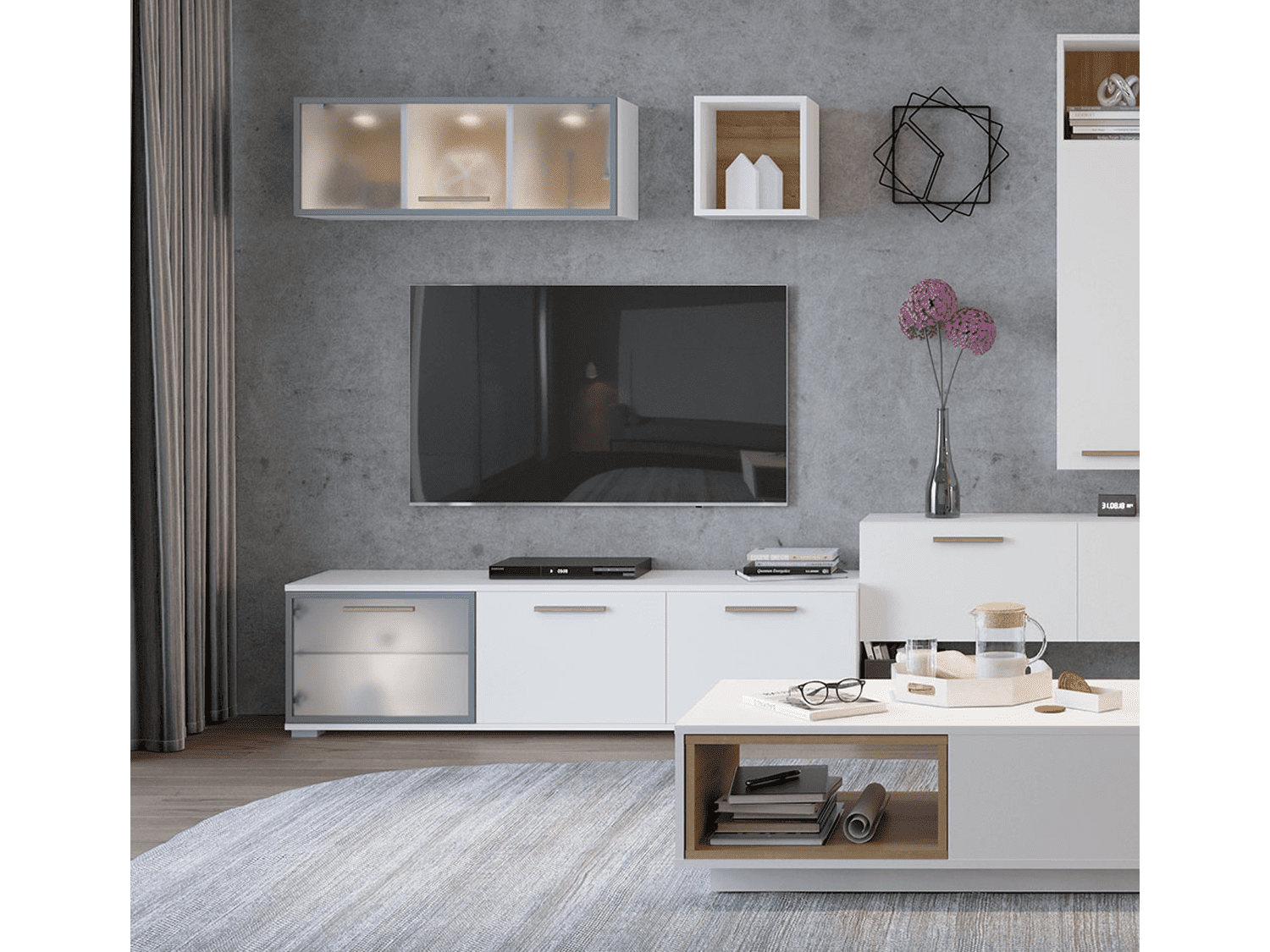 – Korpus kantovan sa zadnje strane debljine 18mm lakiran UV lakom sa soft mat efektom u beloj boji