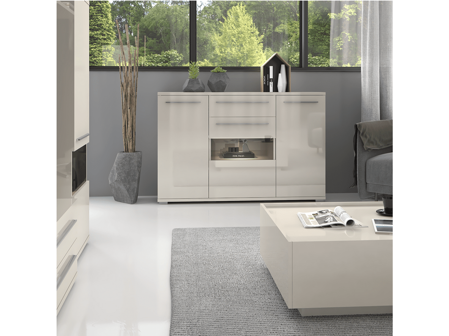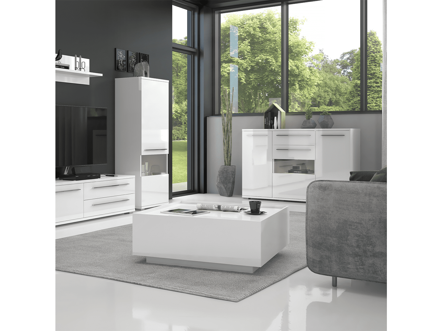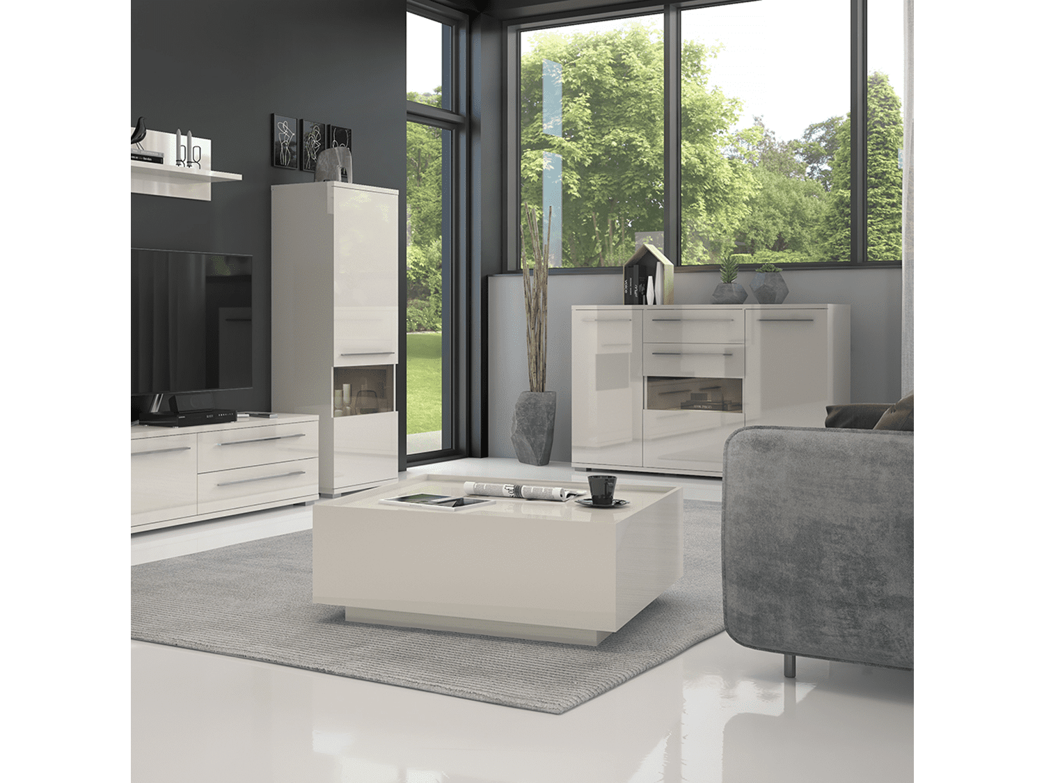 – Front od medijapana lakiran UV lakom u visokom sjaju u kombinaciji sa kaljenim staklom
