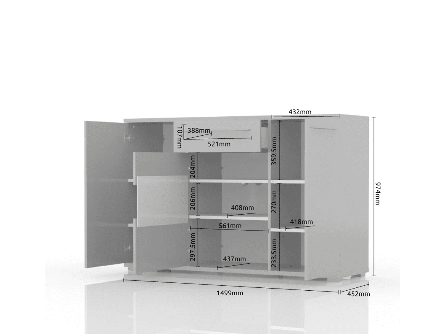 – Poseduje jednu fioku, šest polica, soft-close šarke, soft-close klizače i hromirane ručice