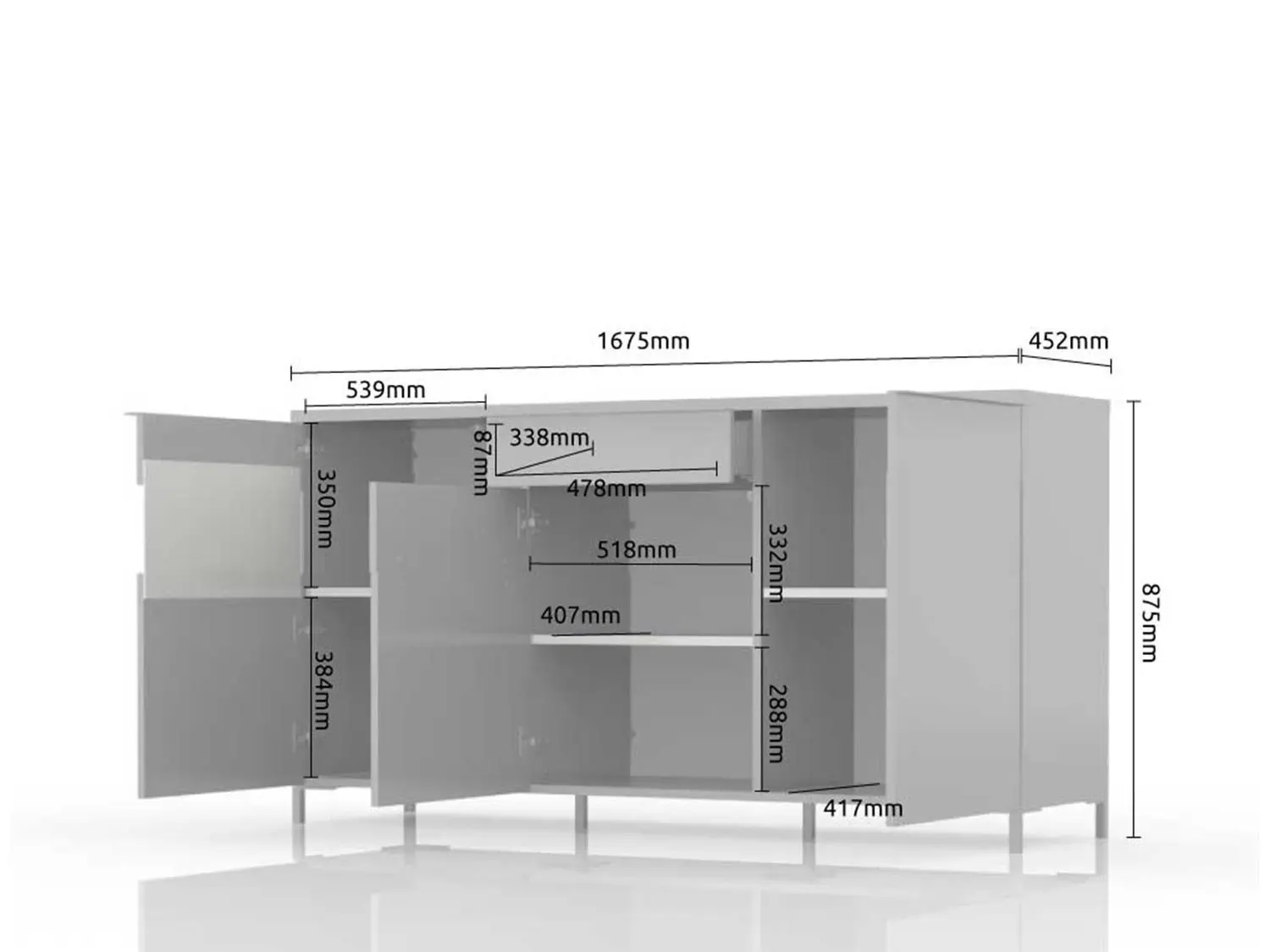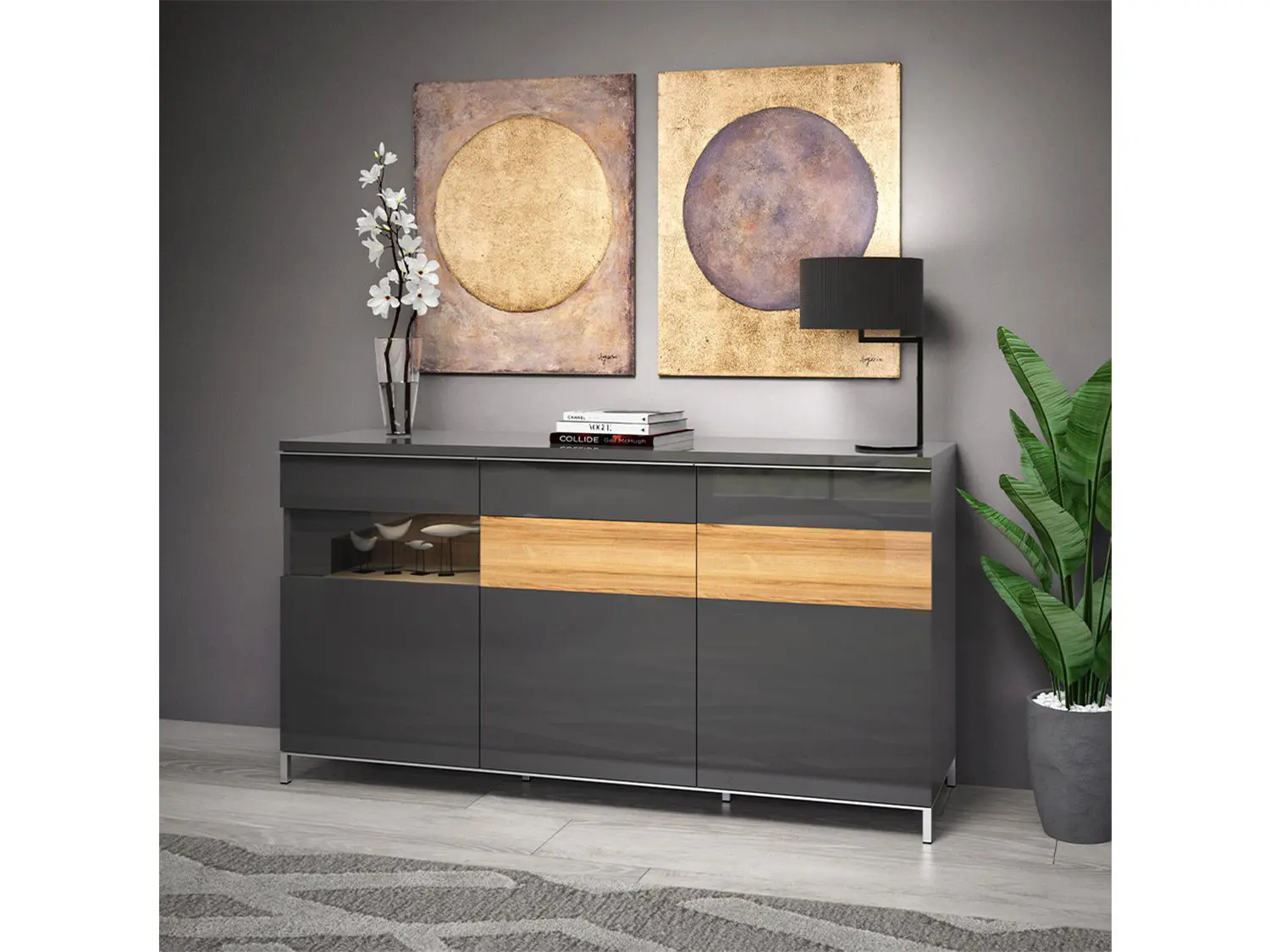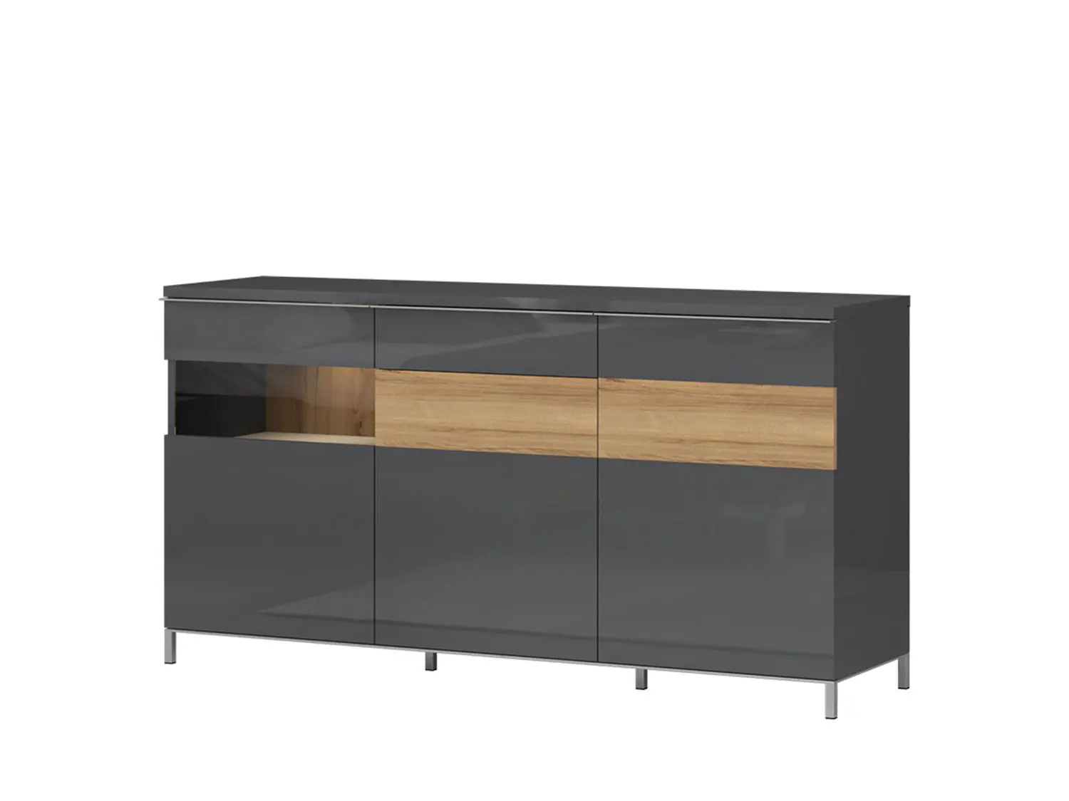 – Funkcionalna trokrilna komoda za dnevnu sobu iz kolekcije ONYX, sa jednim staklenim krilom i jednom fiokom