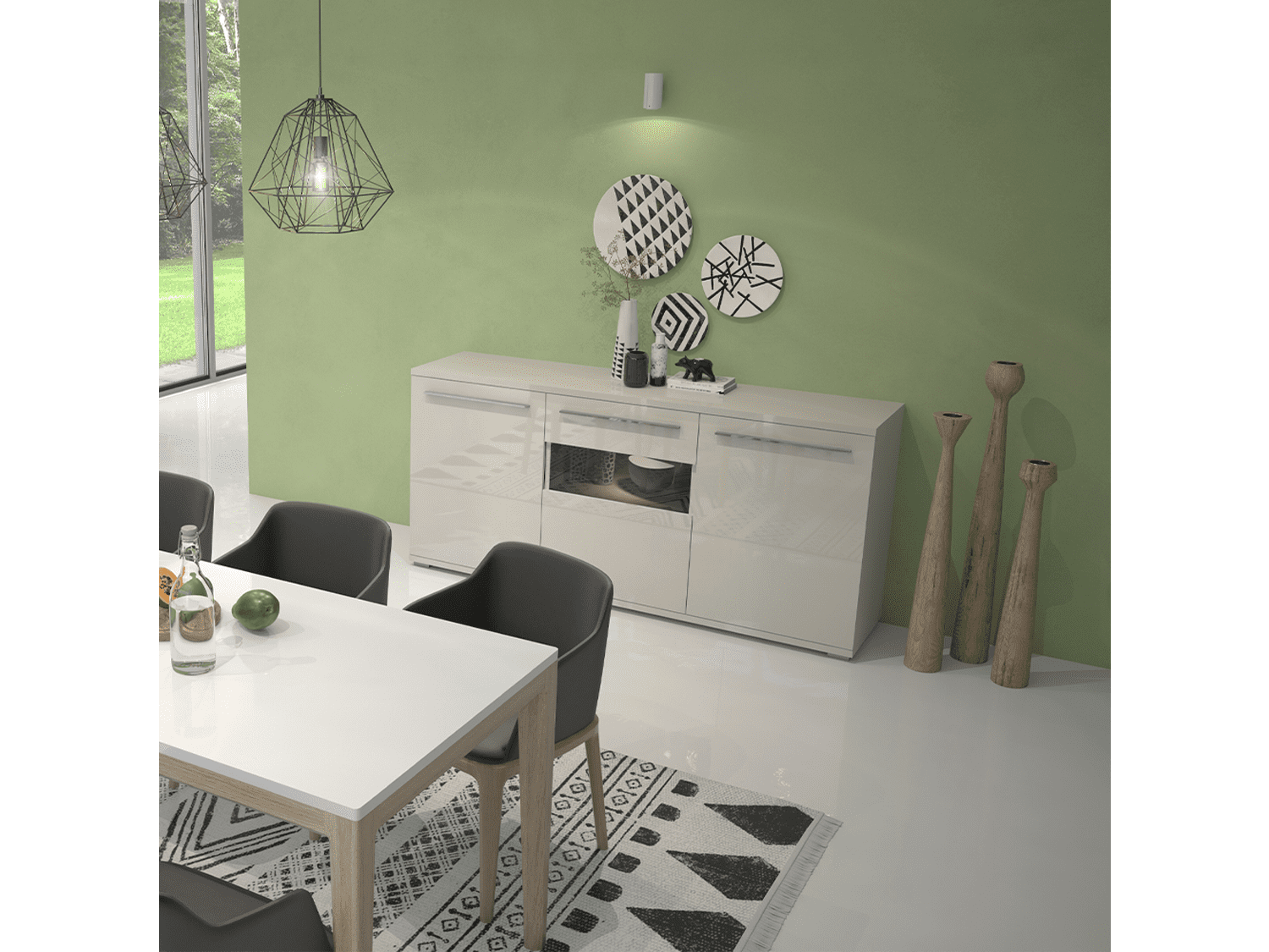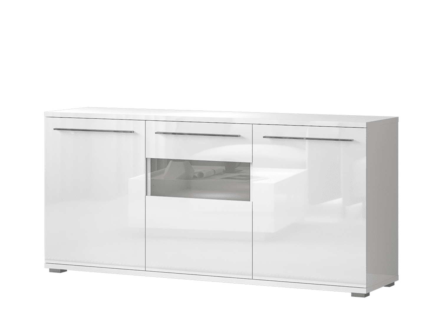 – Front od medijapana lakiran UV lakom u visokom sjaju u kombinaciji sa kaljenim staklom