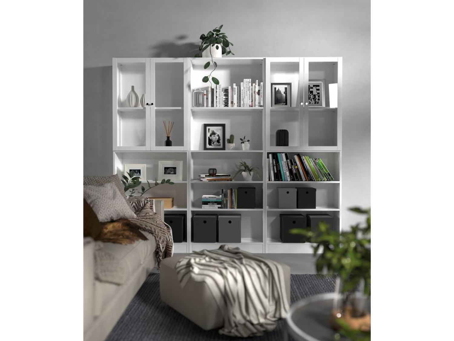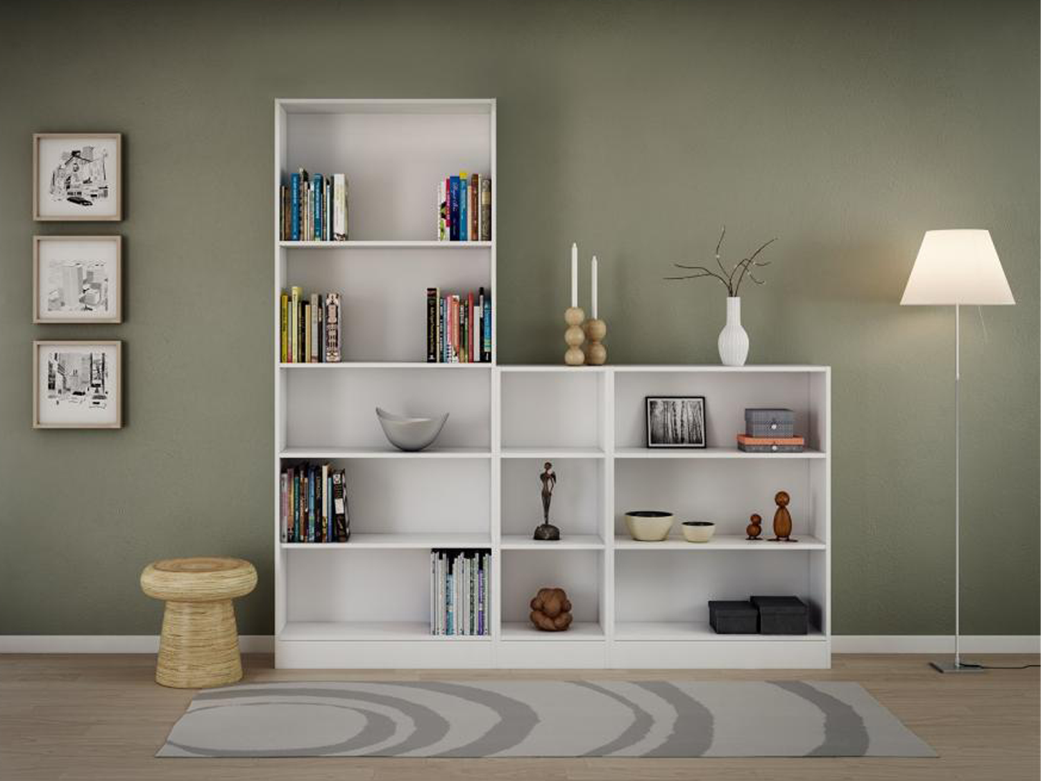 — Četiri otvorene police za pregledno odlaganje knjiga i dekoracije