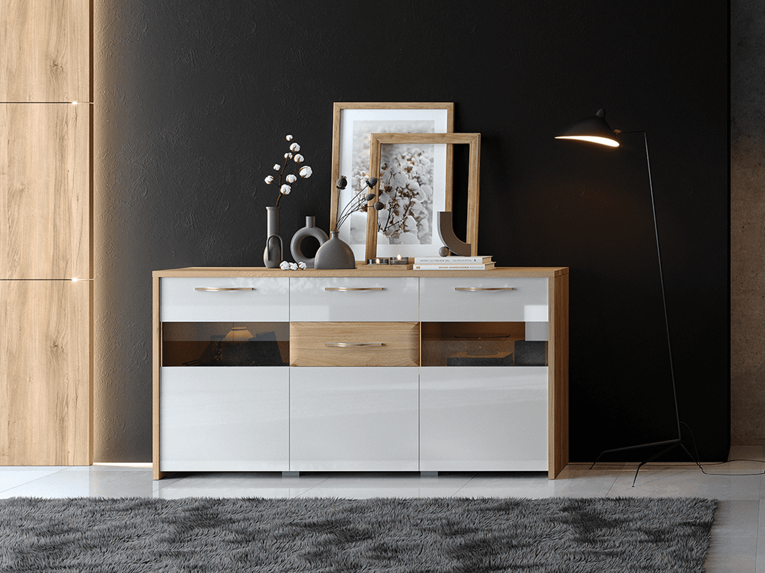 – Kombinacija UV laka u visokom sjaju u bež boji i drvo dekora Pacifik orah