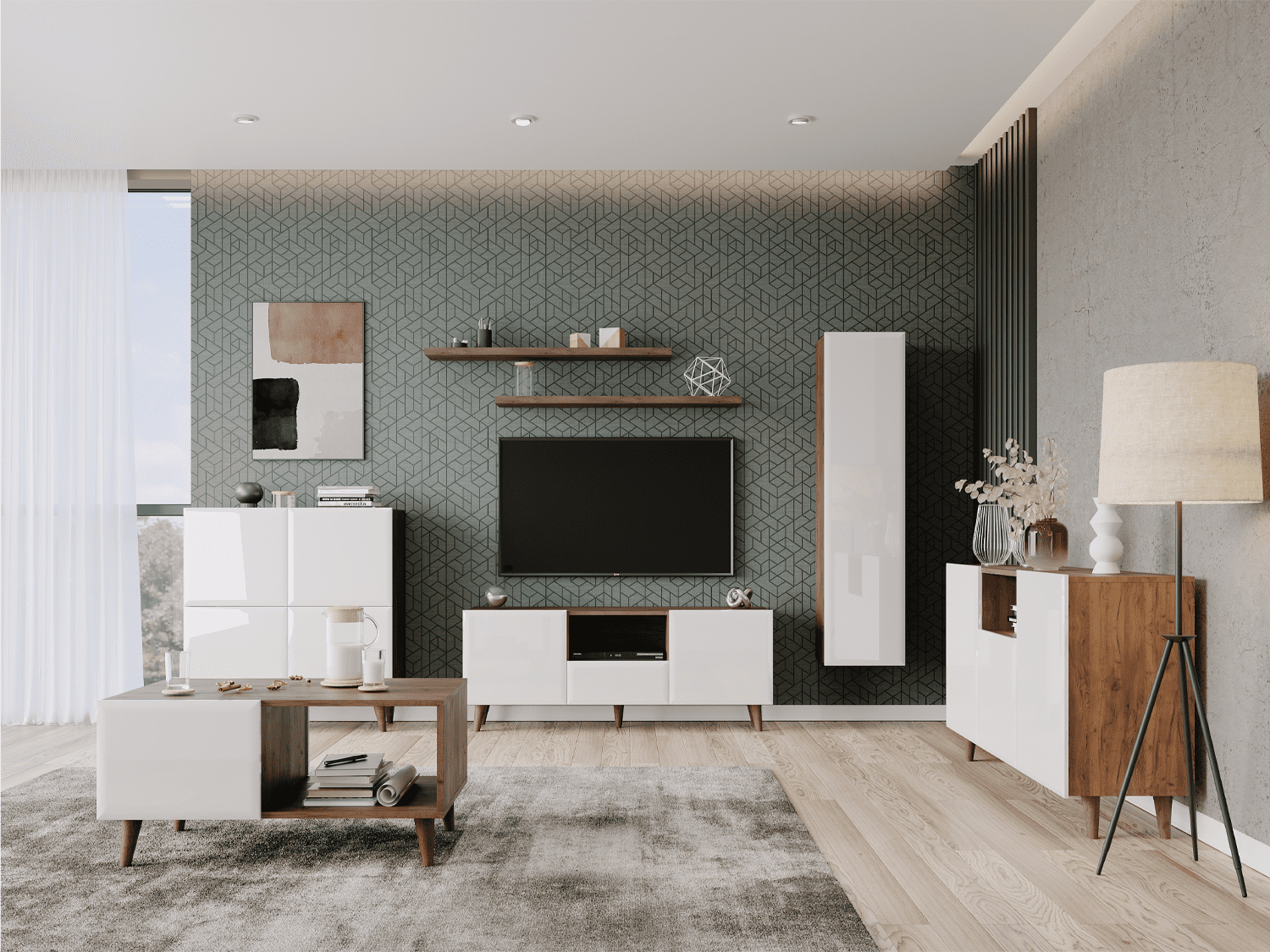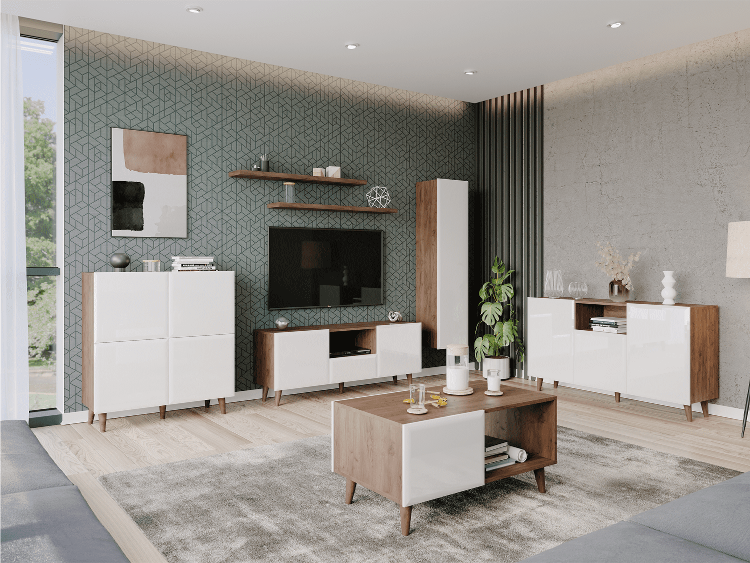 – Kombinacija dekora tobaco hrast i belo visoki sjaj