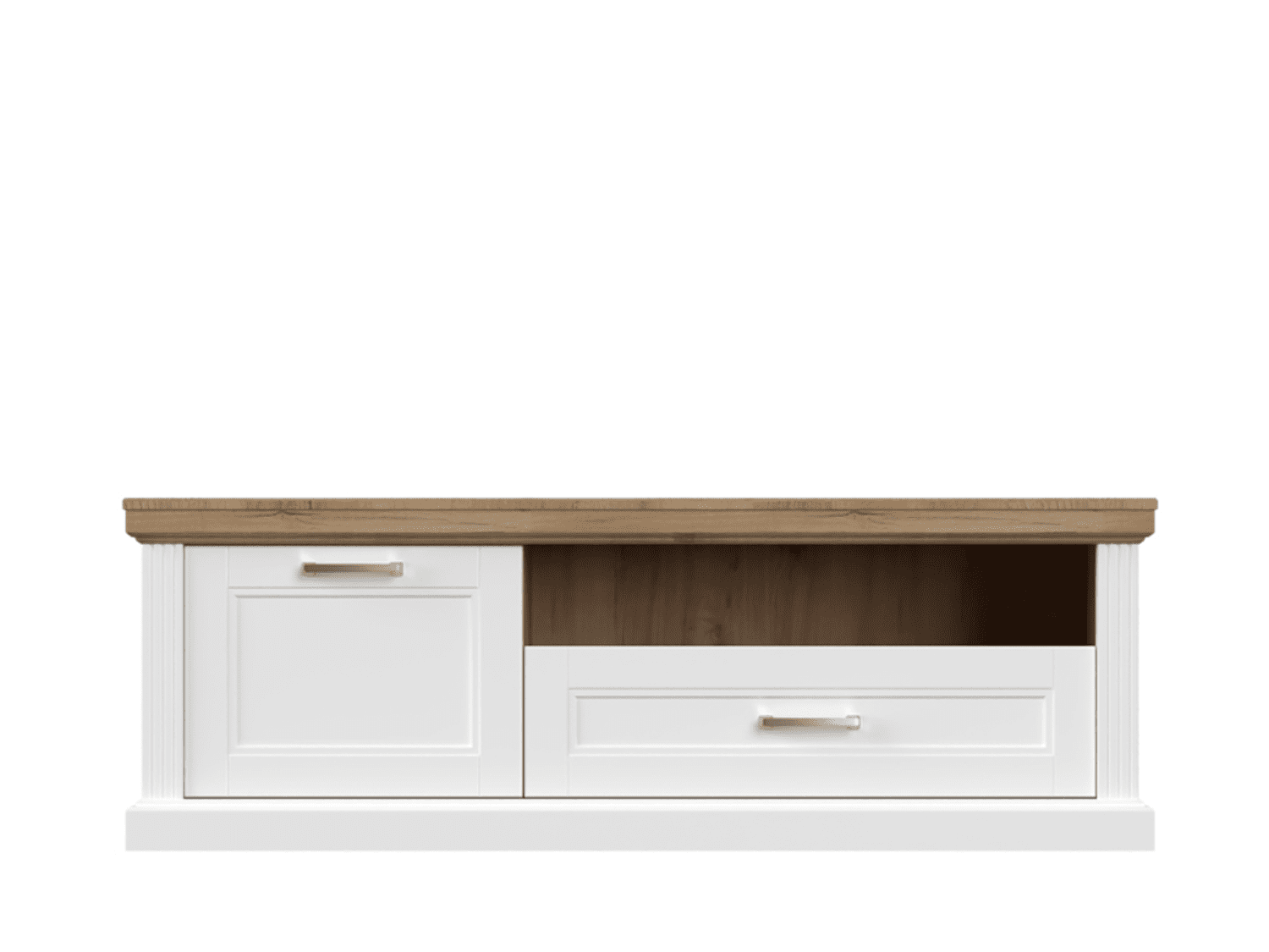 – Poseduje fioku, otvorenu policu, soft-close klizače i dekorativne ručice