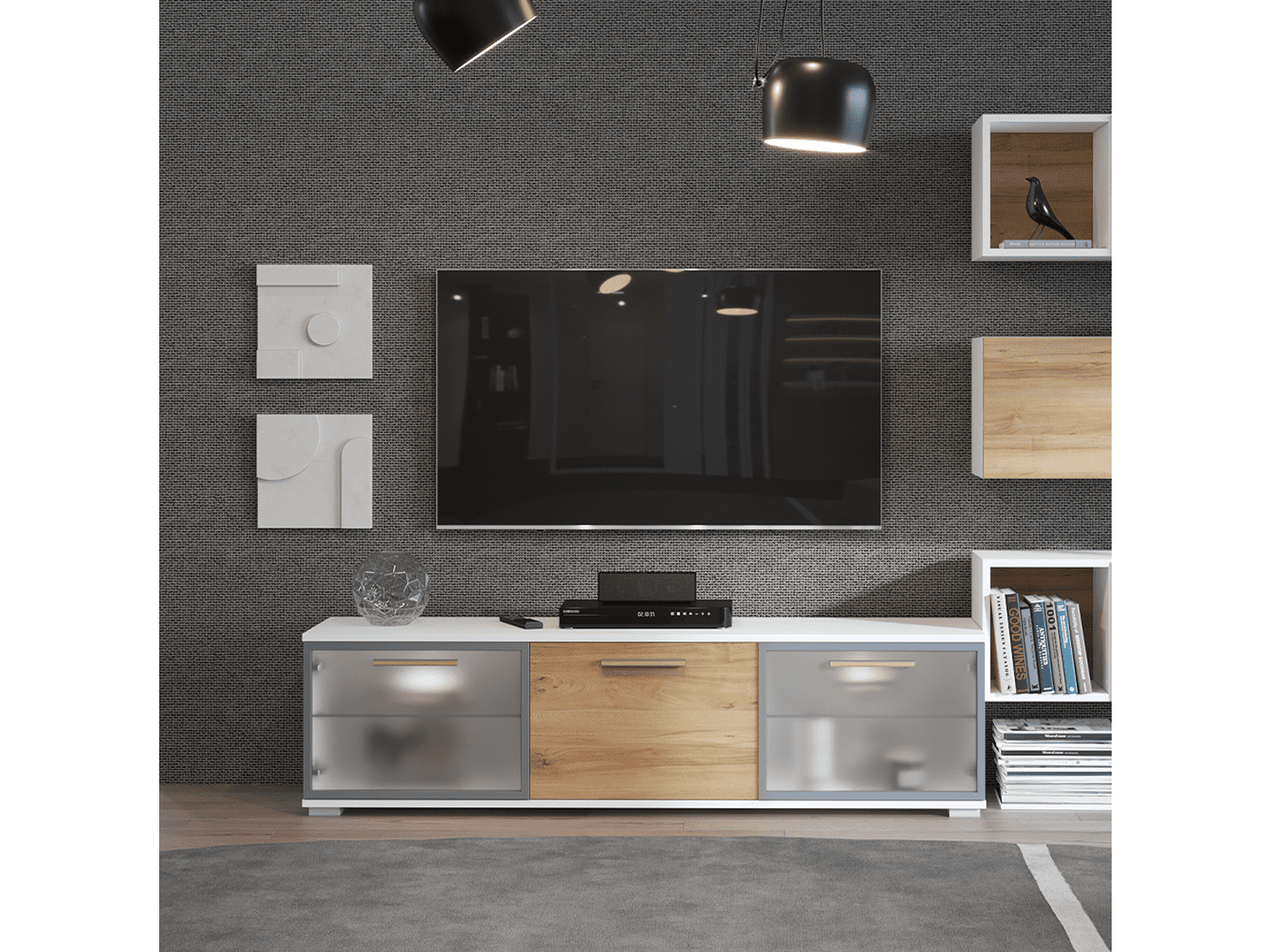 – TV komoda sa dva staklena i jednim punim krilom iz kolekcije All room concept