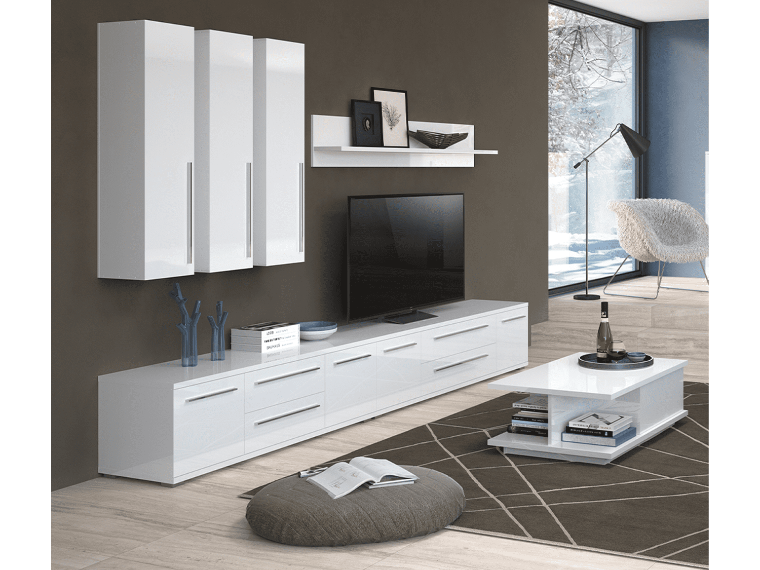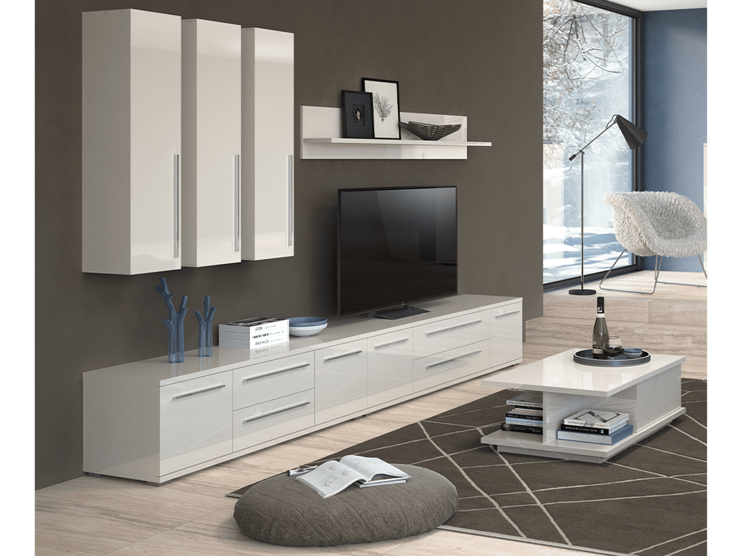 – Tv komoda za dnevnu sobu iz kolekcije nameštaja PIANO sa dva krila (45cm) i dve fioke (60cm), kompletno lakirana najnovijom tehnologijom UV lakiranja