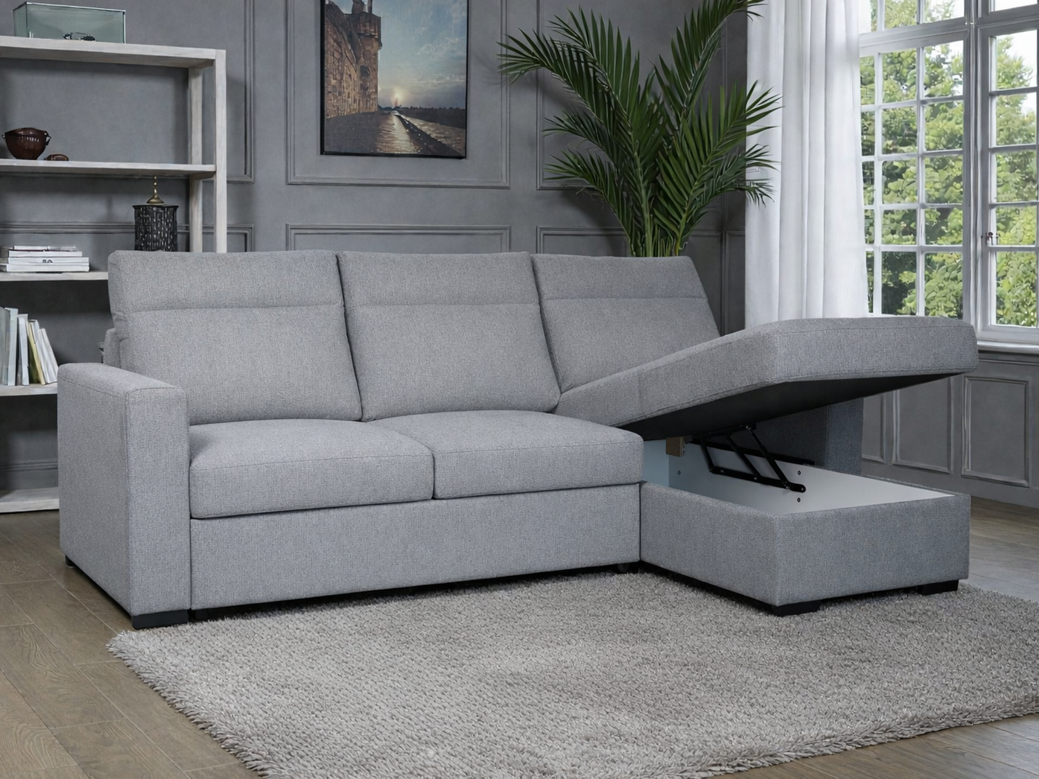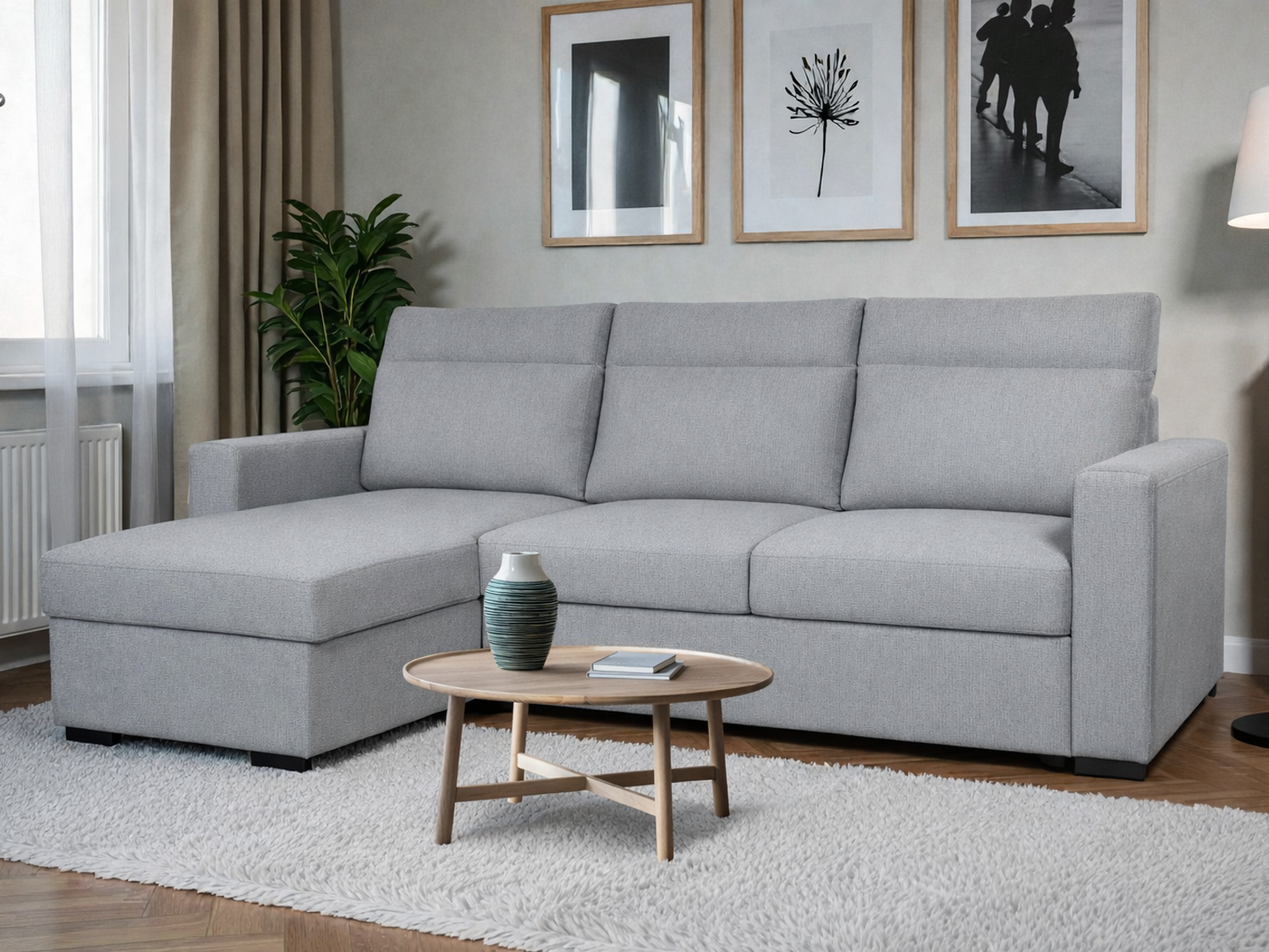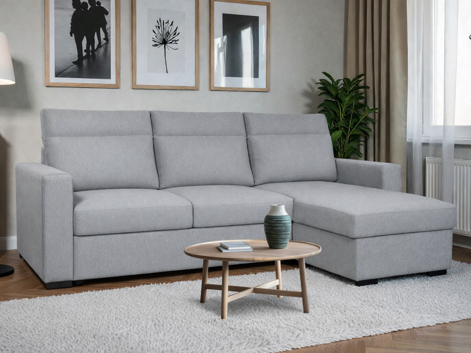 – Kompaktna ugaona garnitura koja pruža dobar odnos udobnosti i funkcionalnosti u dnevnom prostoru