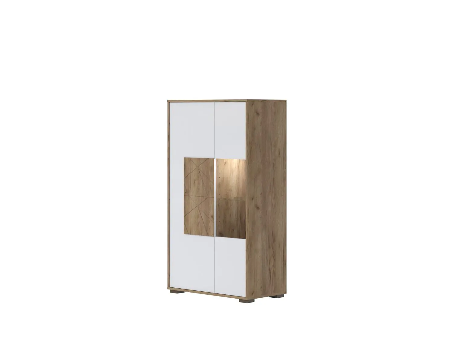 – Poseduje dva staklena faha debljine 6 mm,četiri faha od univera u drvo-dekoru Tobacco hrast,soft-close šarke,push-to-open mehanizam