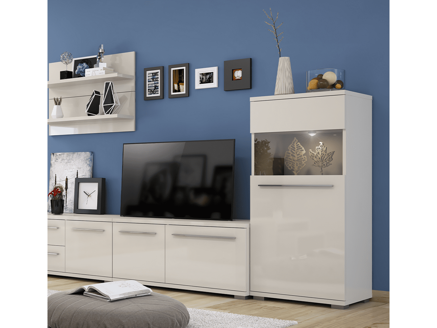 – Front od medijapana lakiran UV lakom u visokom sjaju u kombinaciji sa kaljenim staklom