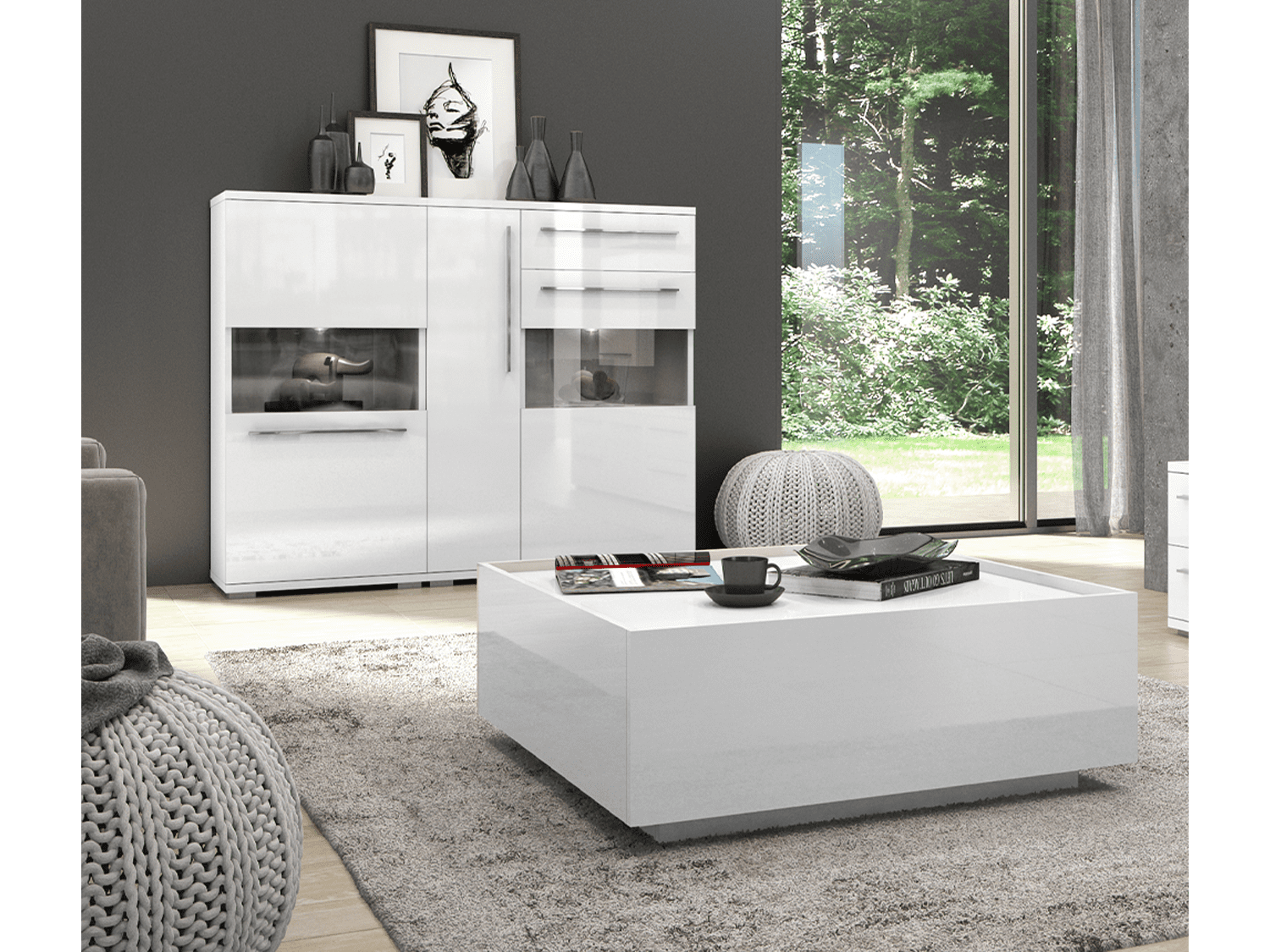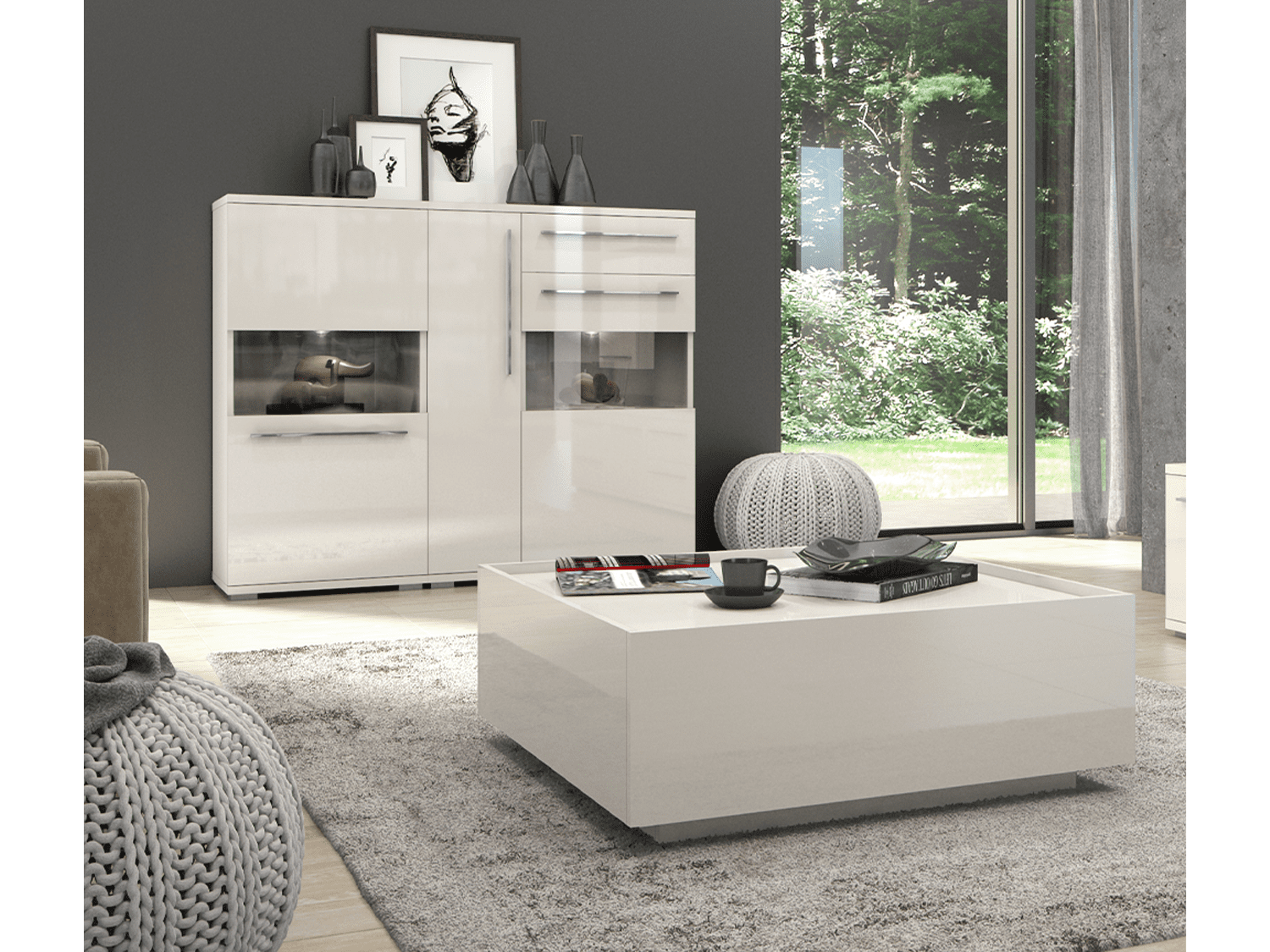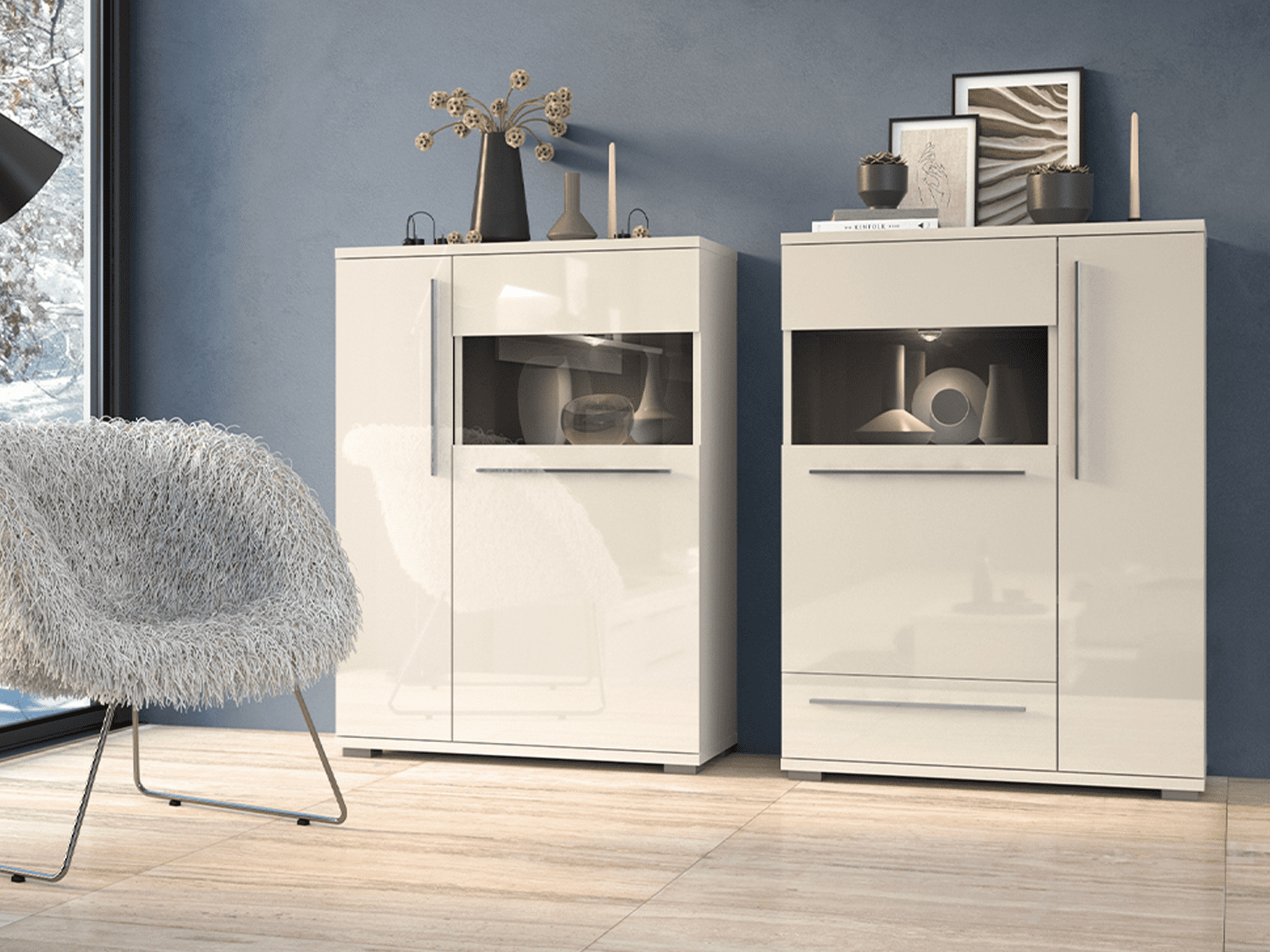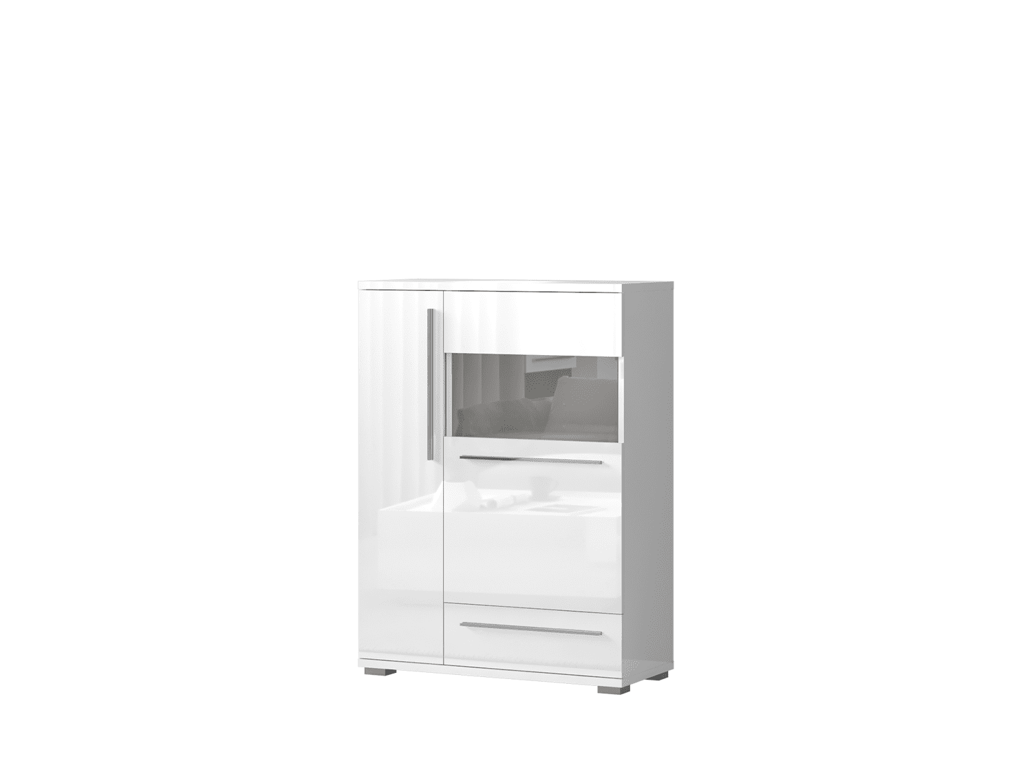 – Front od medijapana lakiran UV lakom u visokom sjaju u kombinaciji sa kaljenim staklom