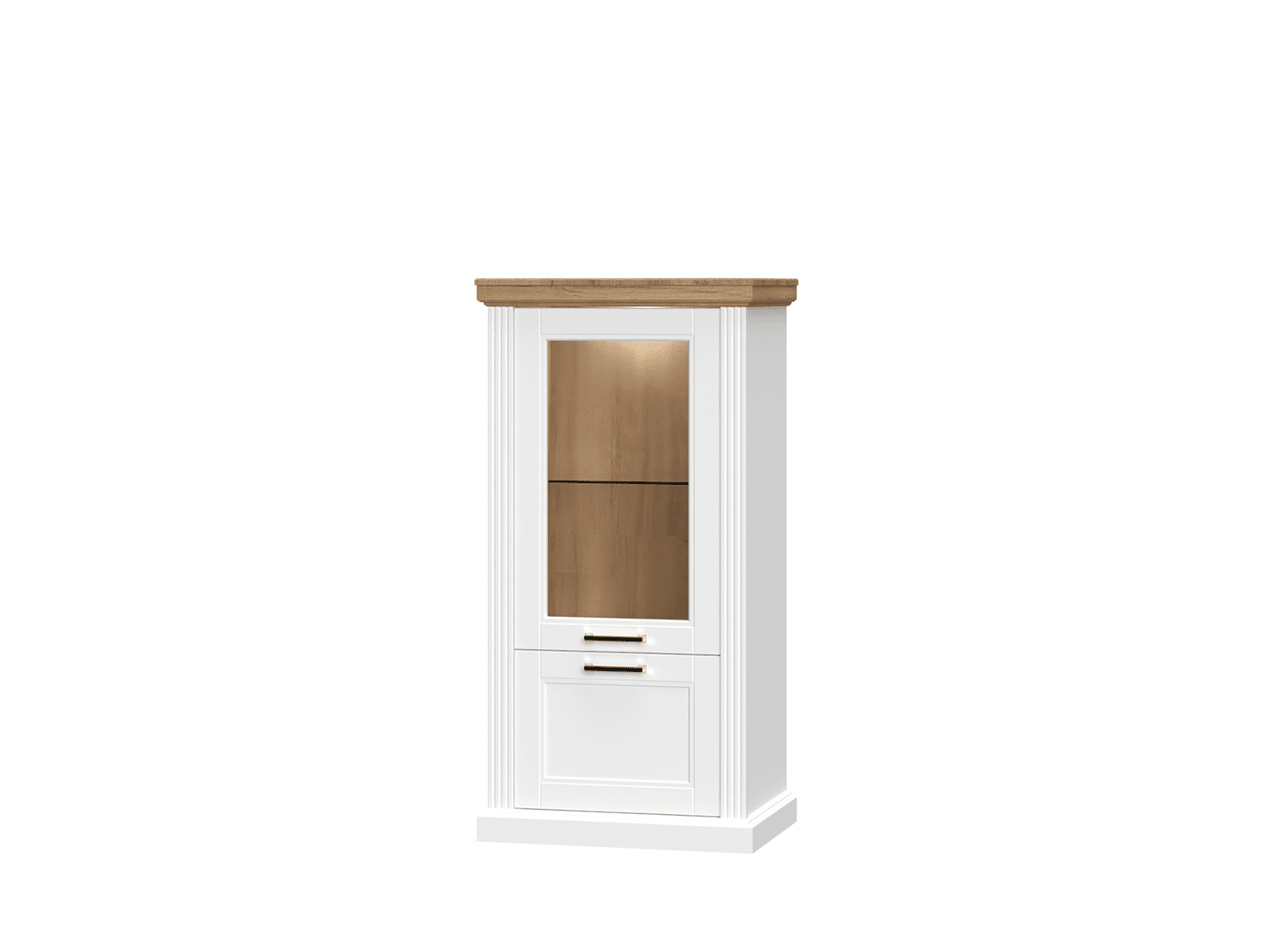 – Poseduje jednu policu od stakla, jednu policu od univera, soft-close šarke i dekorativne ručice
