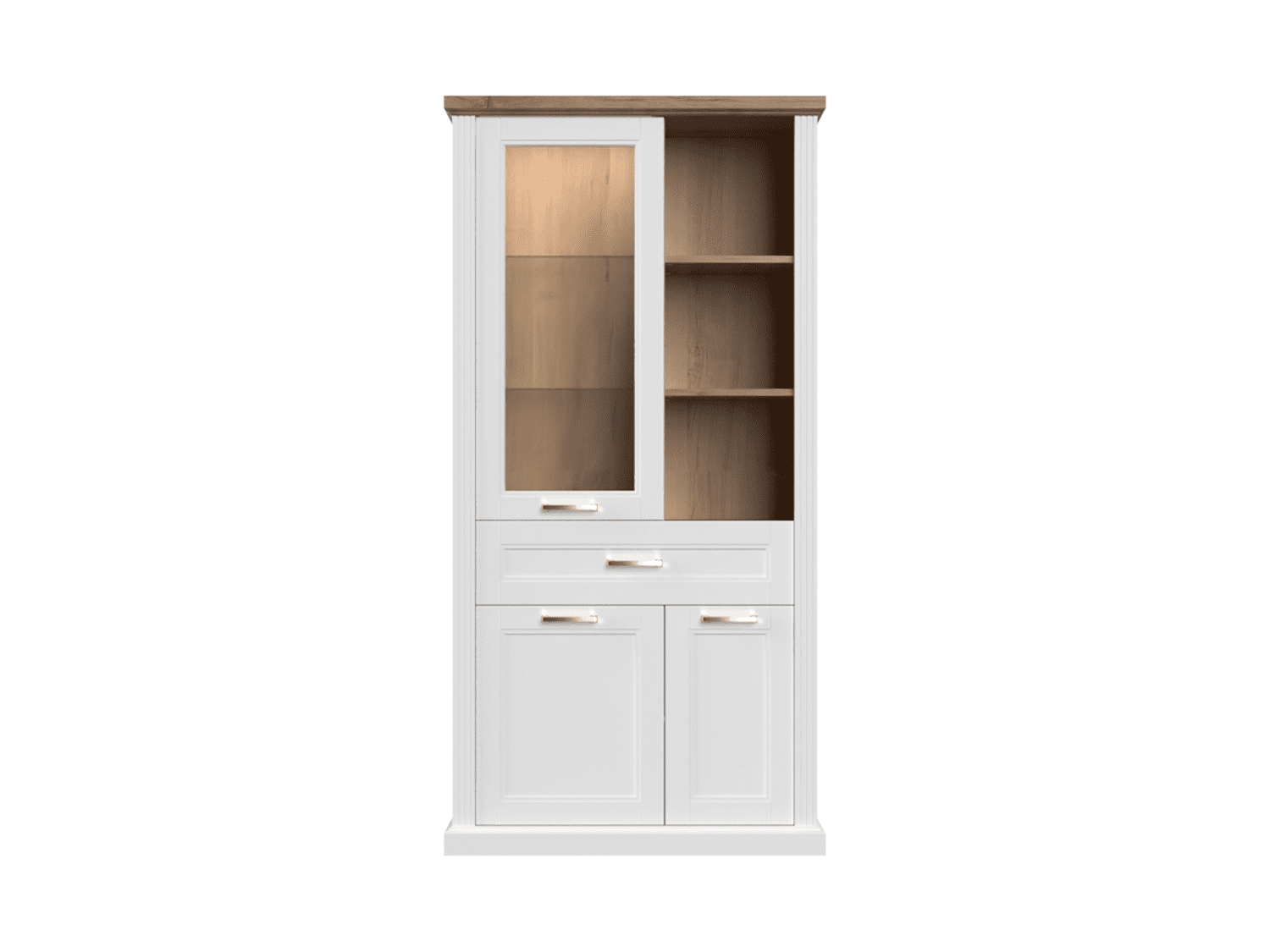 – Poseduje dve police od stakla, tri police od univera, soft-close šarke i dekorativne ručice