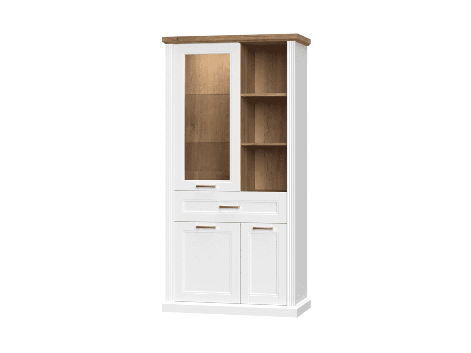 – Poseduje dve police od stakla, tri police od univera, soft-close šarke i dekorativne ručice