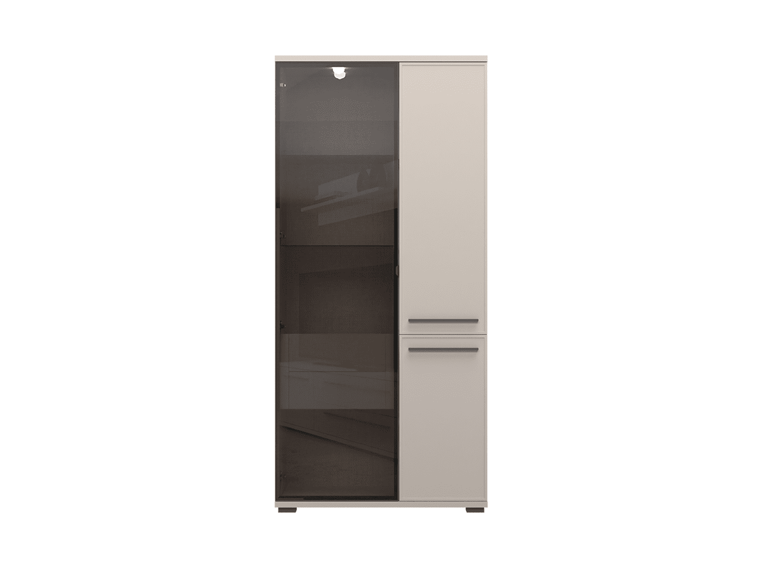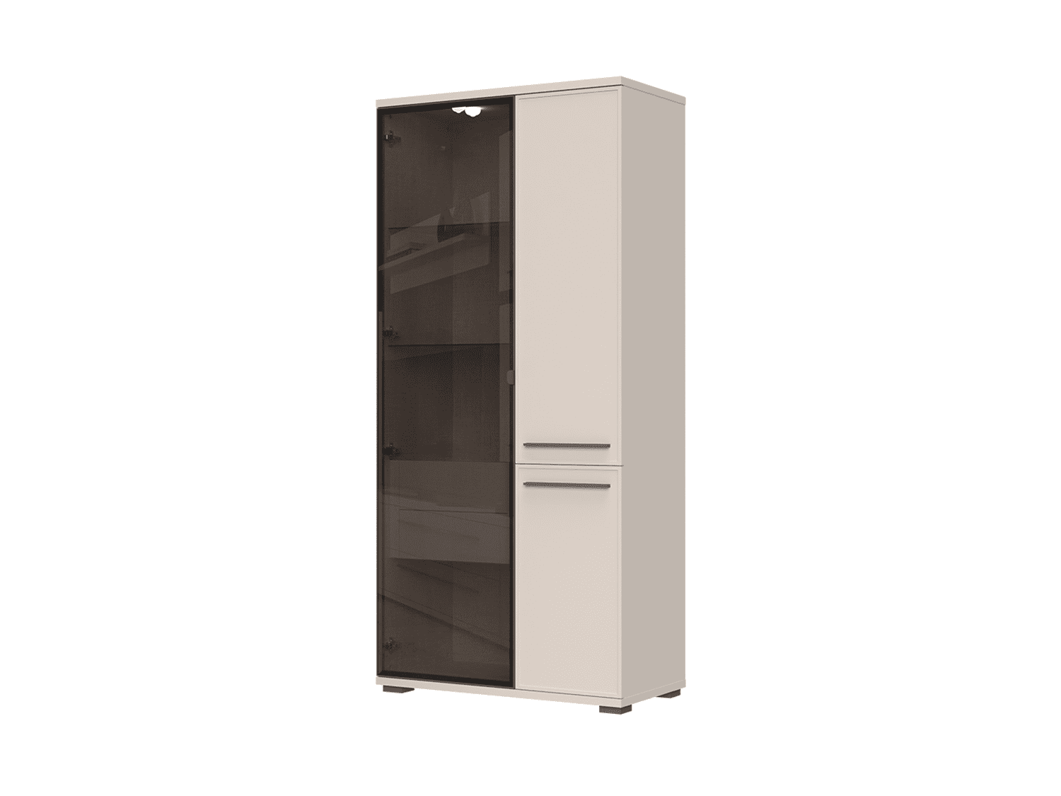 – Vitrina sa jednim punim i jednim krilom sa aluminijumskim ramom sa staklom i unutrašnjim fiokama iz kolekcije dnevna soba Opera