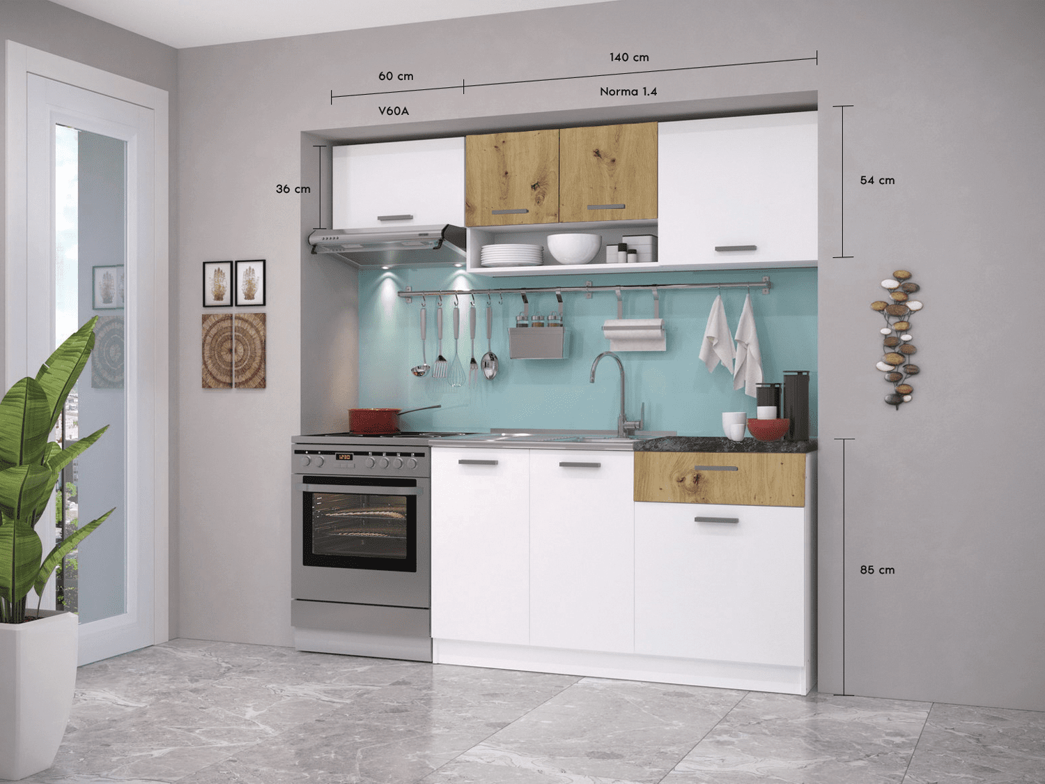 ŠIRINA: 140 cmVISINA: 195 cmDUBINA: 60 cmDUBINA ELEMENTA: 47 cmDUBINA RADNE PLOČE: 60 cm
