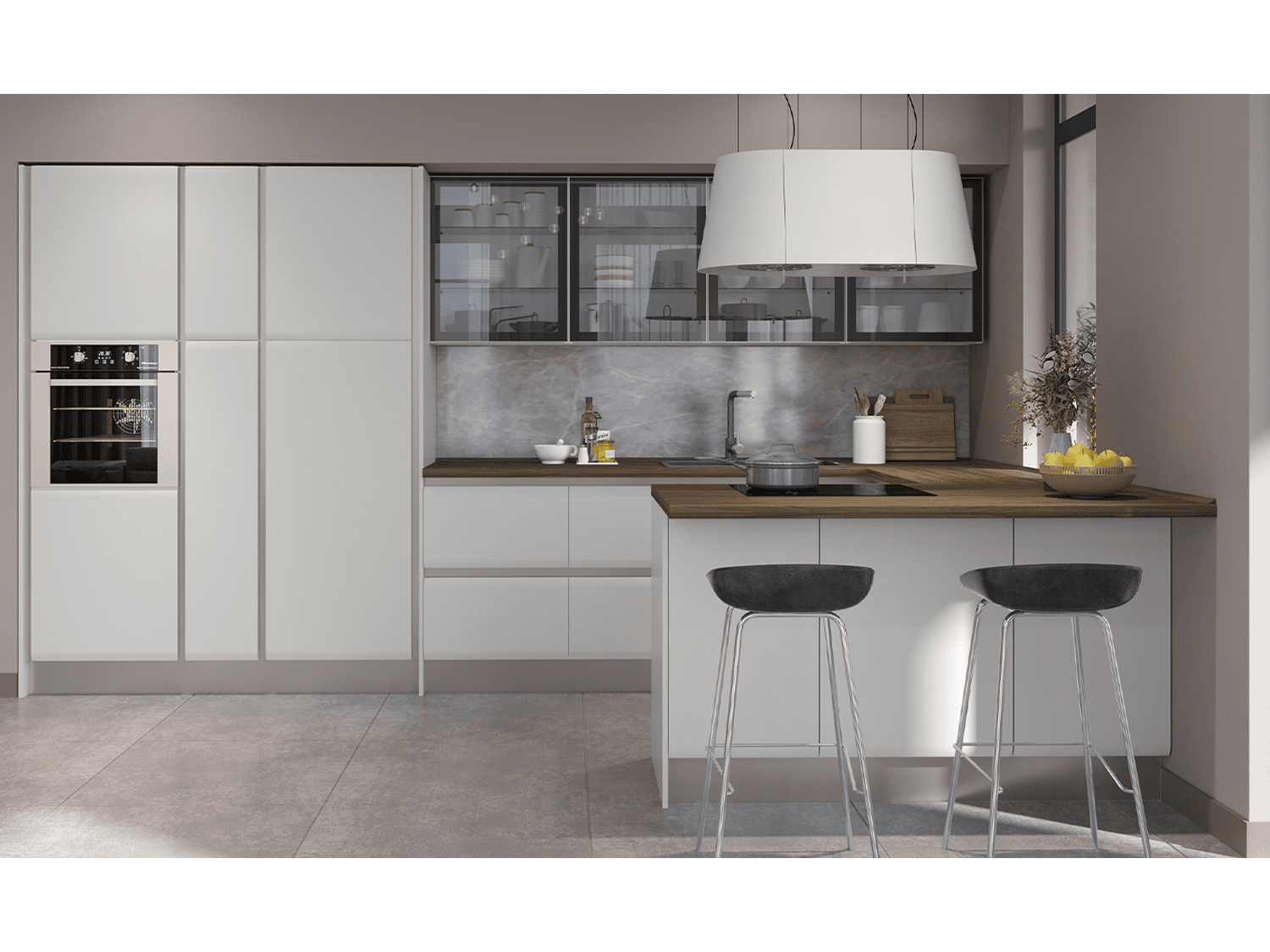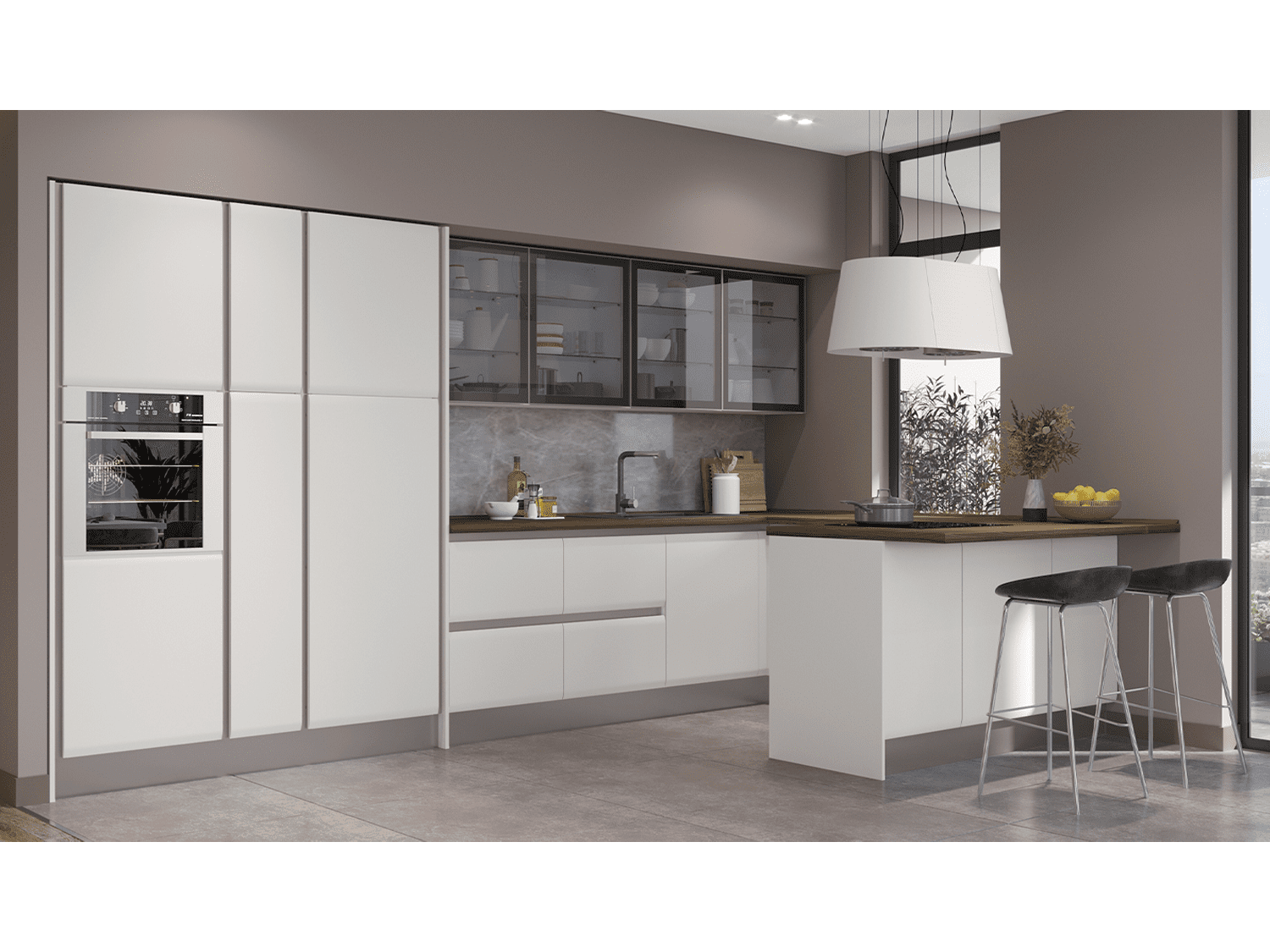– Modularna kuhinja Invictus u kombinaciji dekora belo i kašmir mat lak