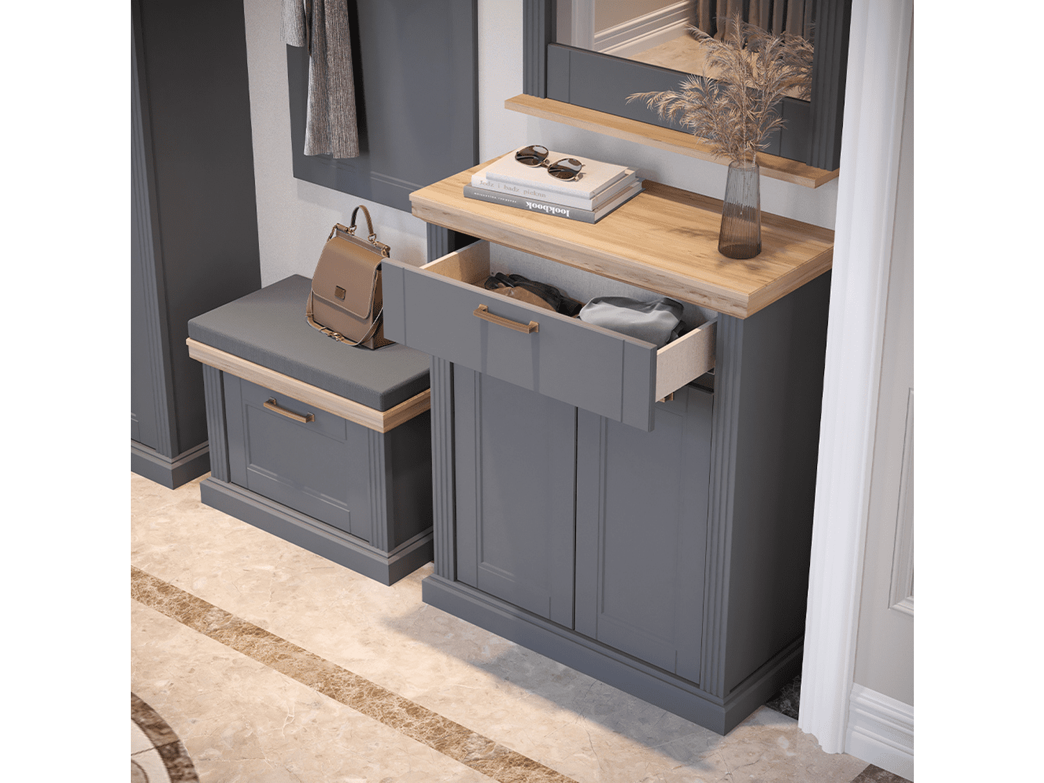– Cipelarnik za predsoblje iz kolekcije TARA, sa dva krila i jednom fiokom