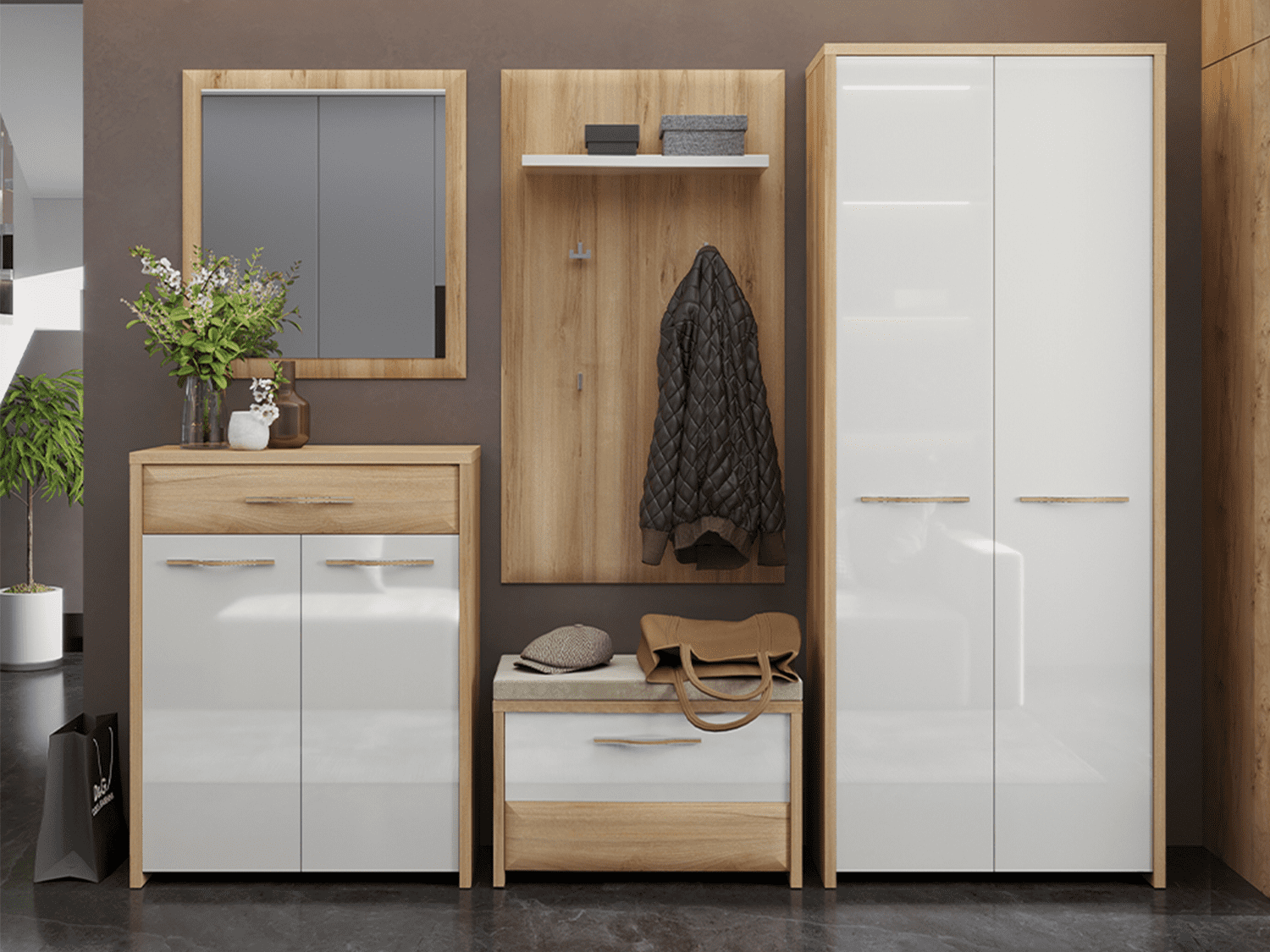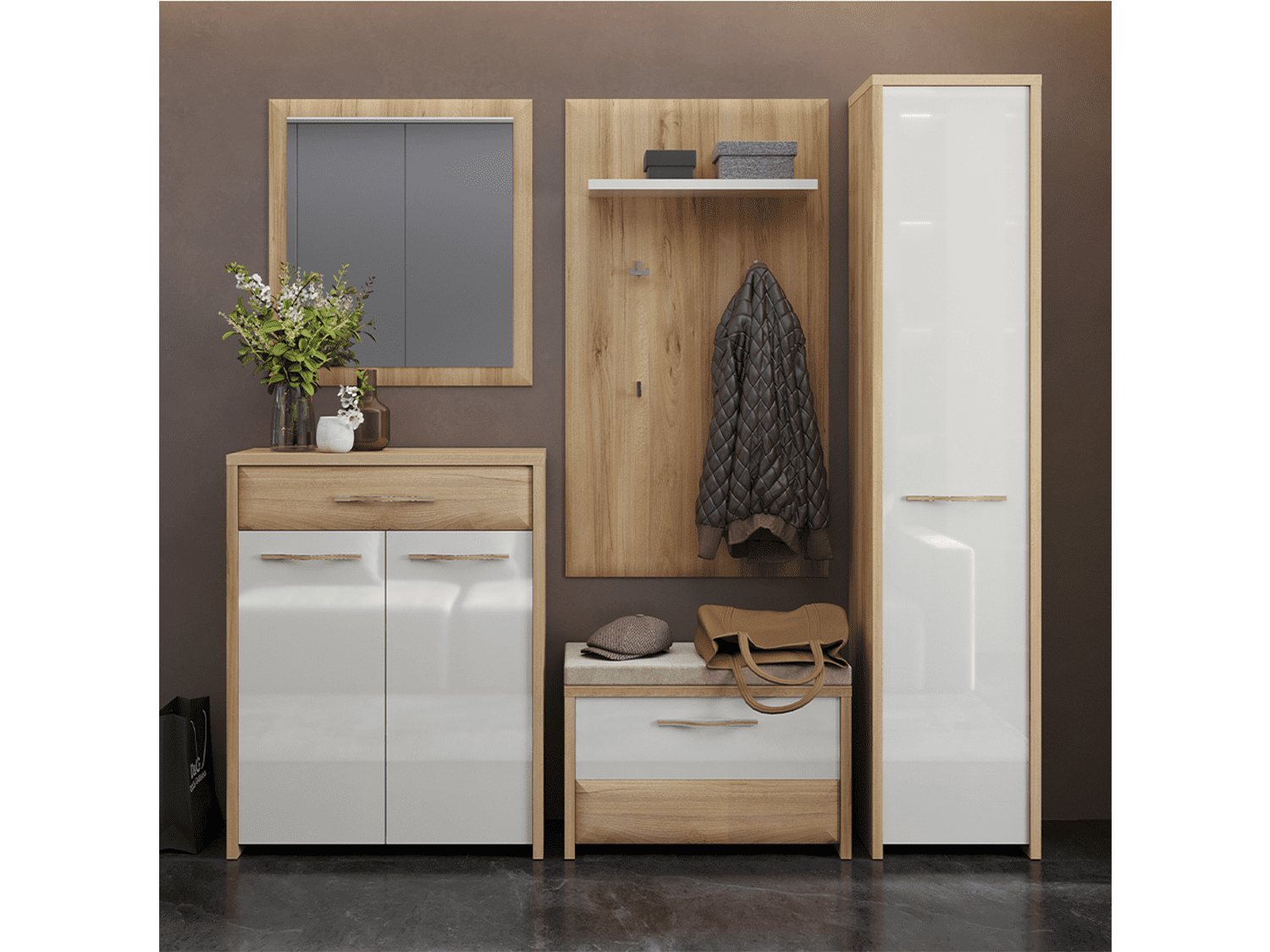 – Komoda za predsoblje iz kolekcije GALA sa jednim krilom i tapaciranim jastukom za sedenje