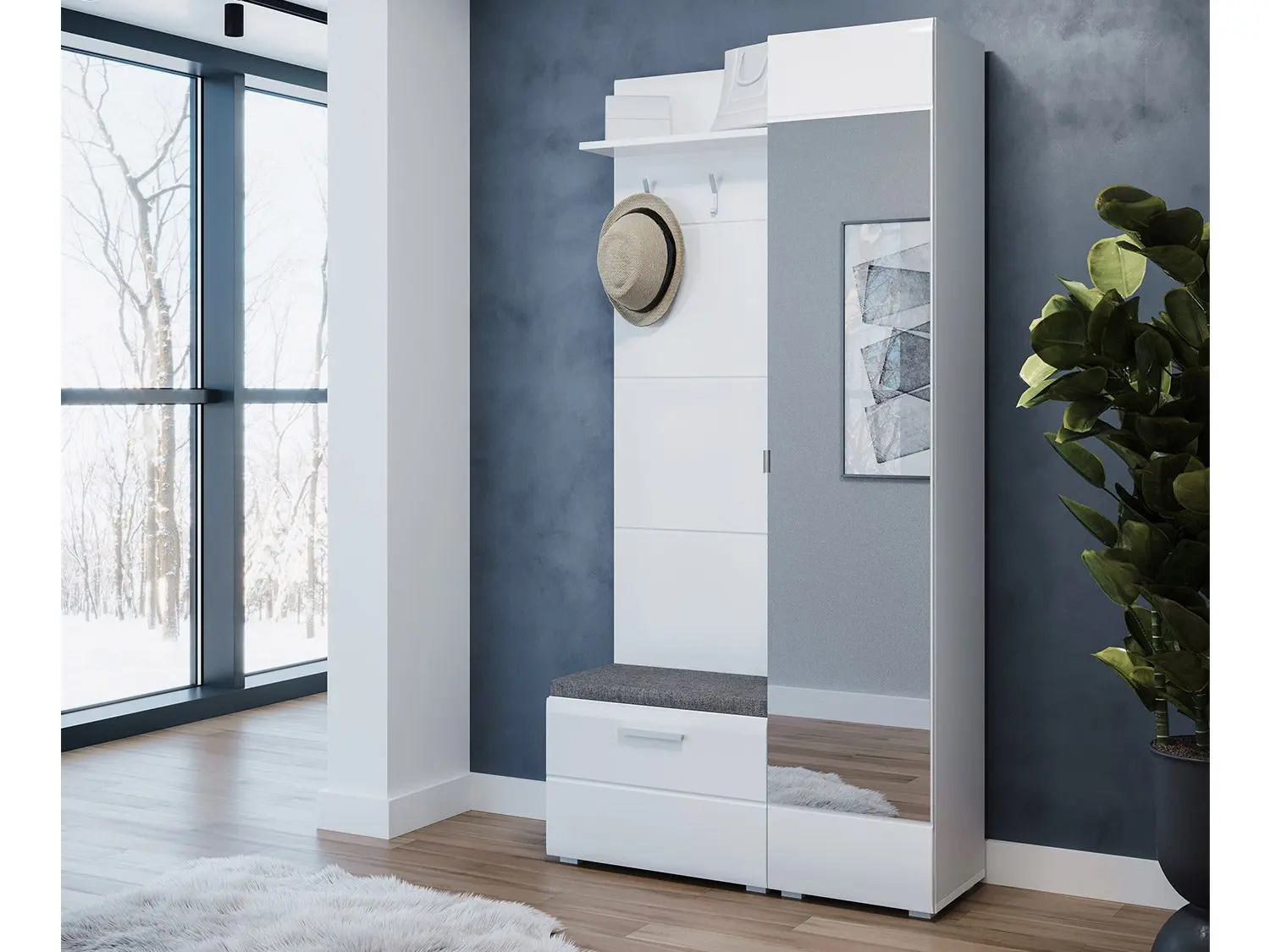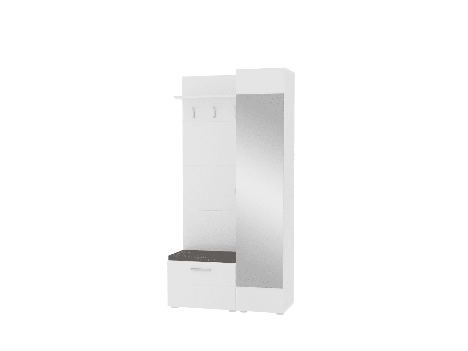 – Poseduje ogledalo, pet unutrašnjih polica, tri vešalice i jastuk u sivoj boji