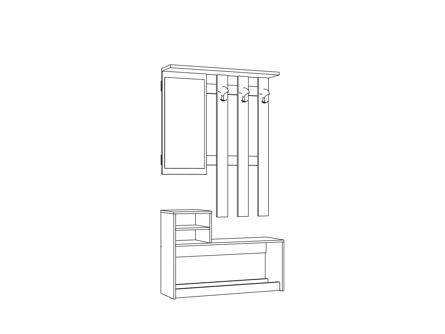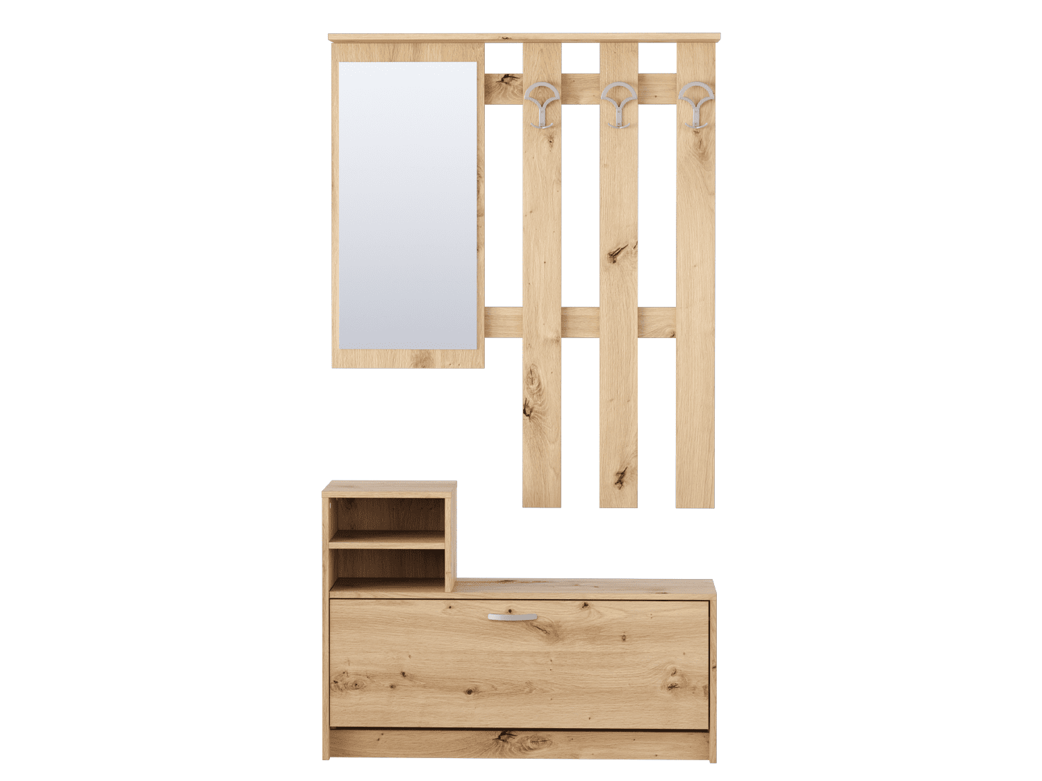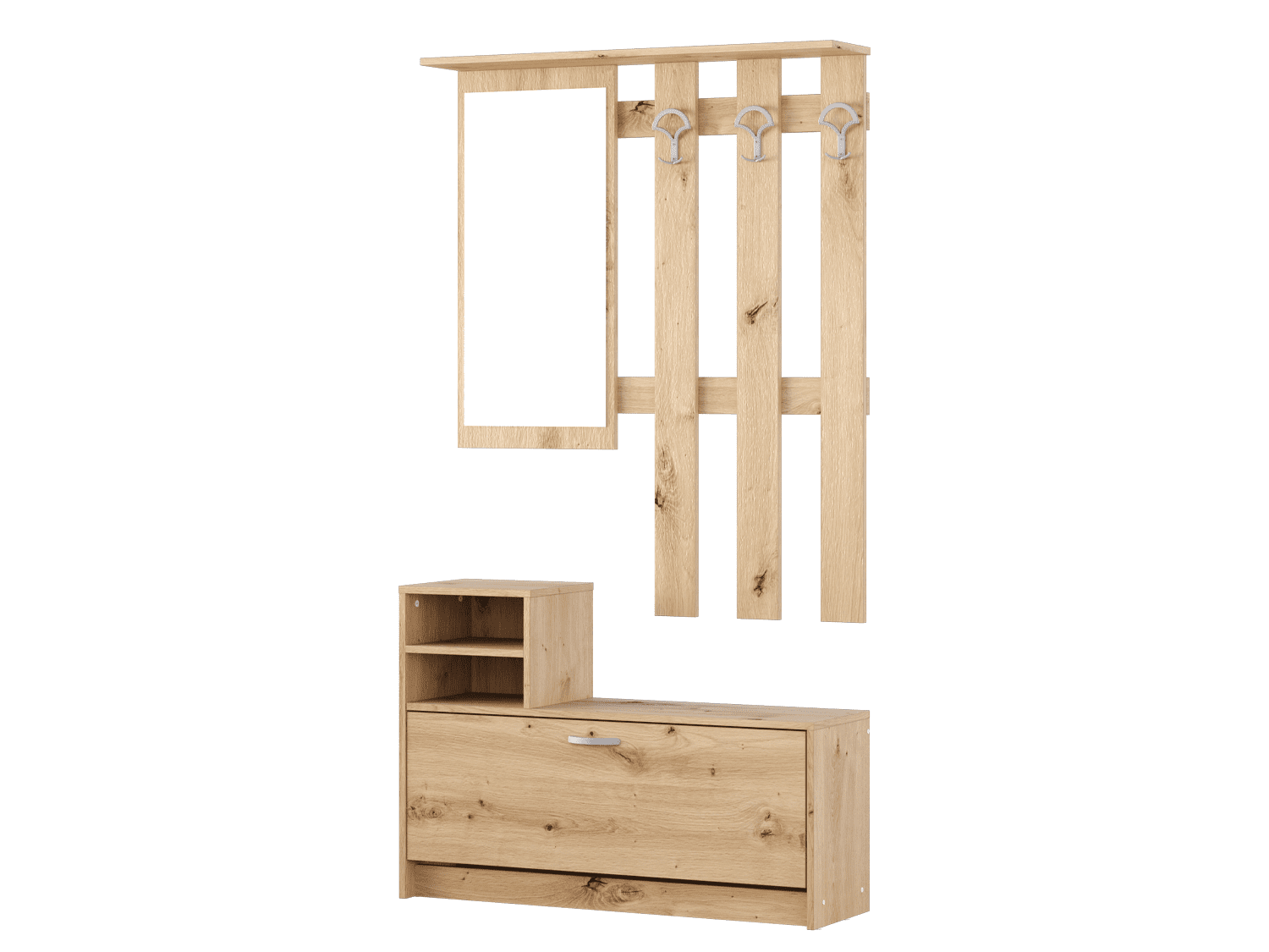– Poseduje ogledalo, jednu policu, deo za odlaganje obuće, tri vešalice i jednu ručicu