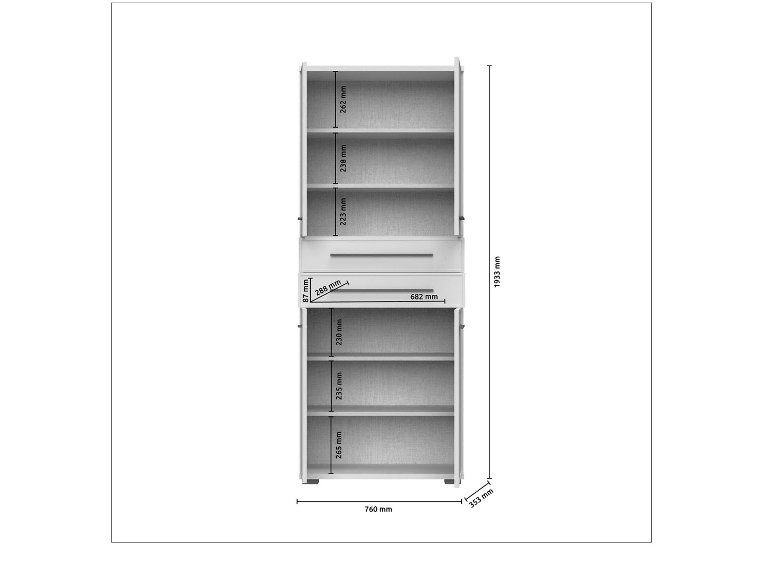 ŠIRINA: 76 cmVISINA: 194 cmDUBINA: 36 cm