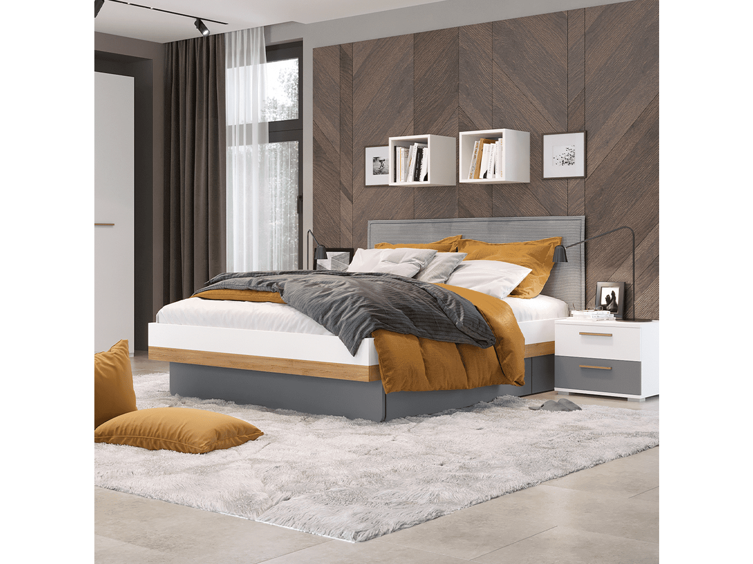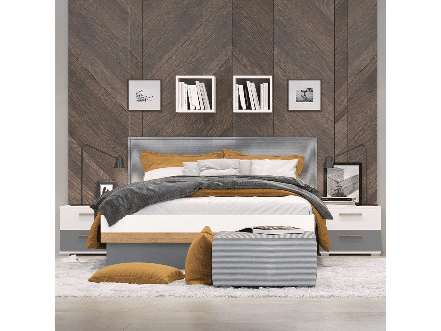 – Konstrukcija kreveta debljine 25mm lakirana UV lakom sa soft mat efektom u kombinaciji drvo dekora pacifik orah i bele boje