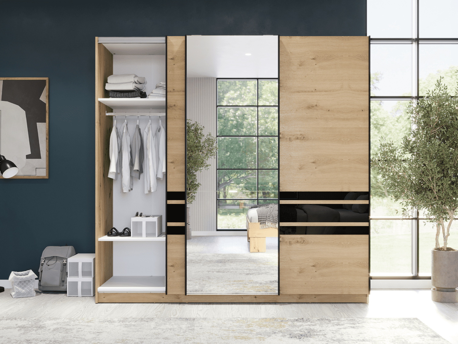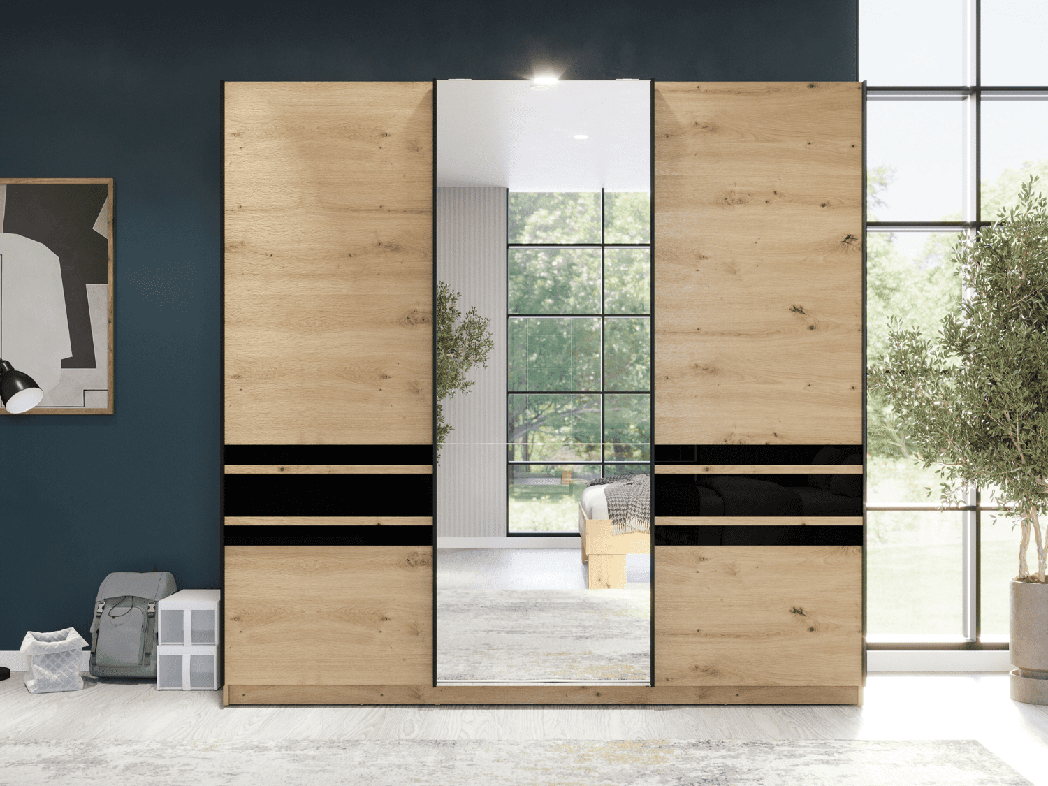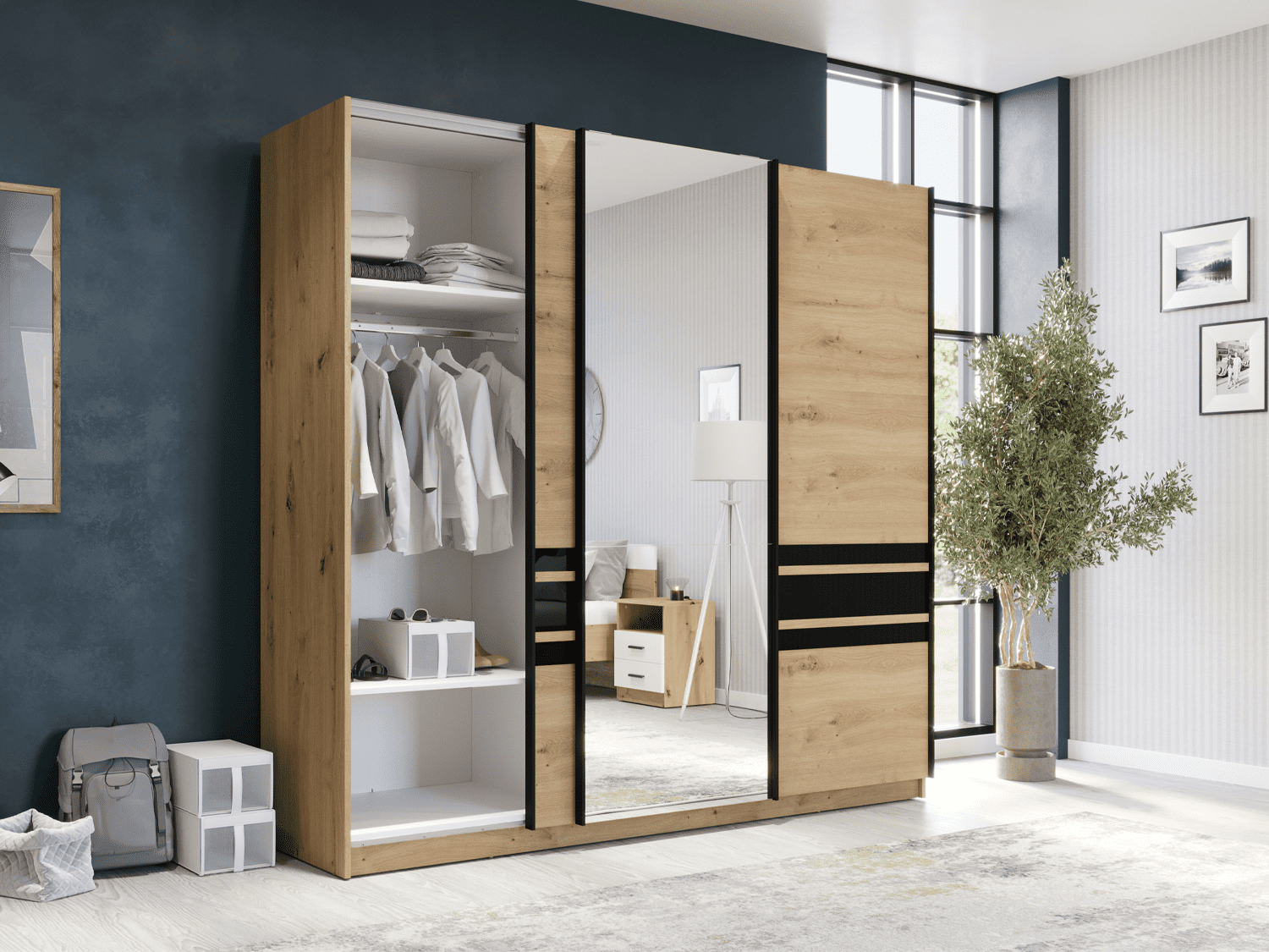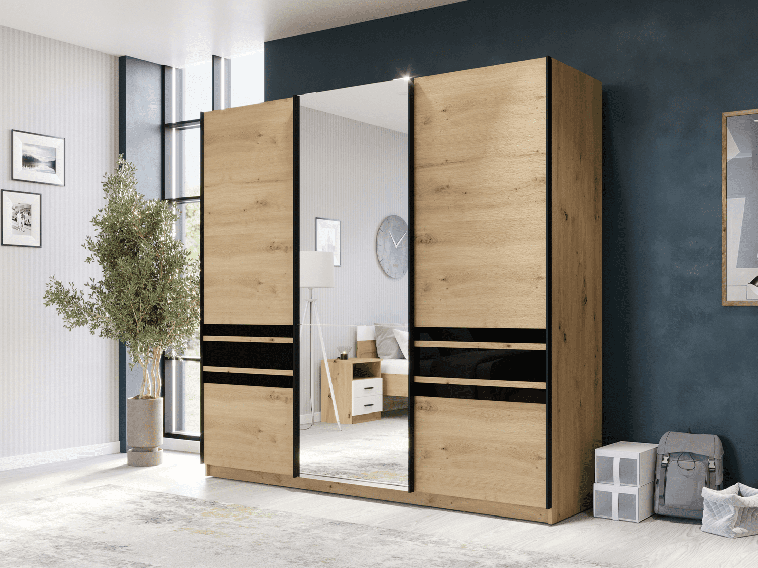 – Trokrilni klizni plakar sa ogledalom
