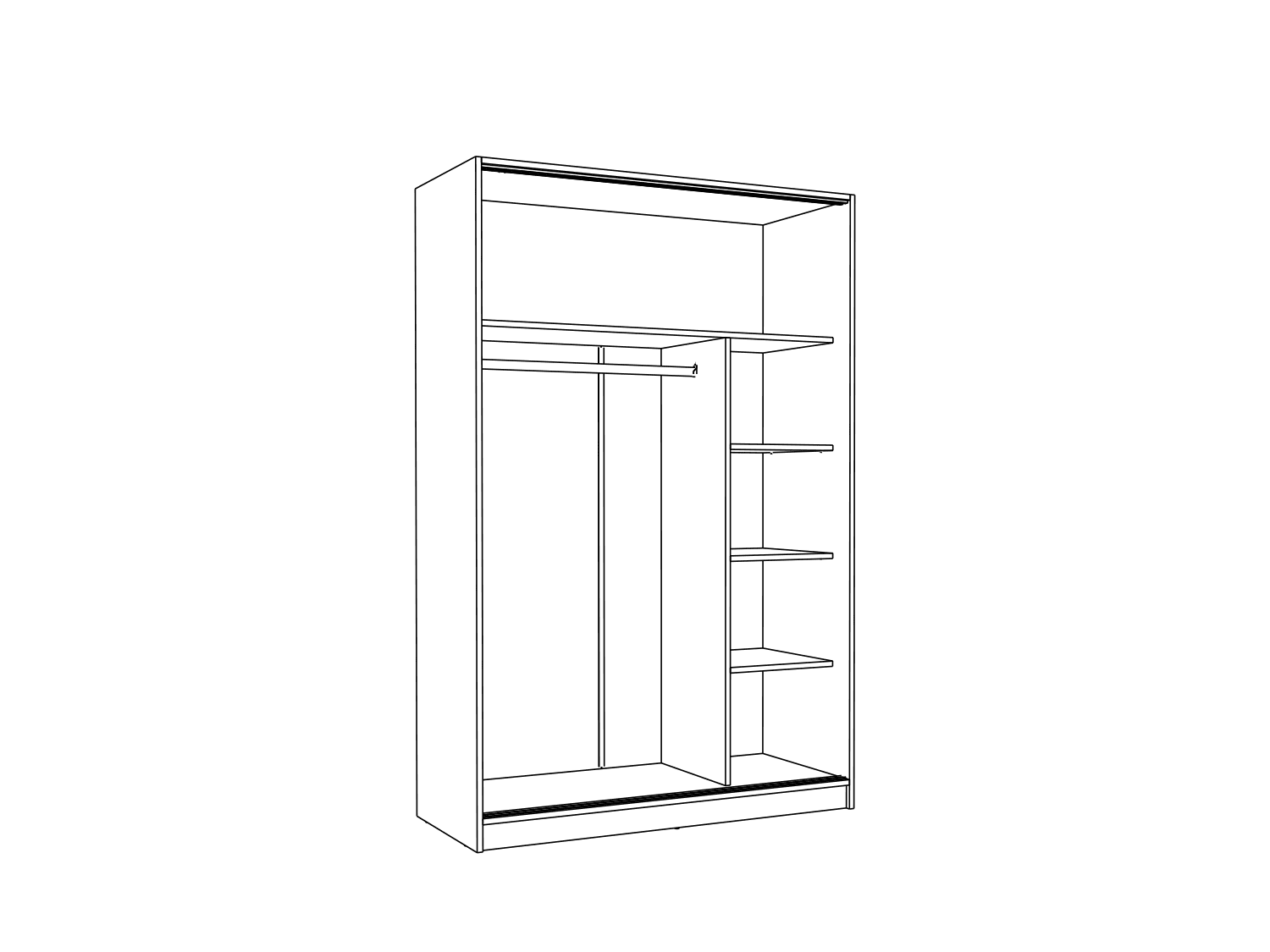 – Poseduje jednu garderobnu šipku i pet polica