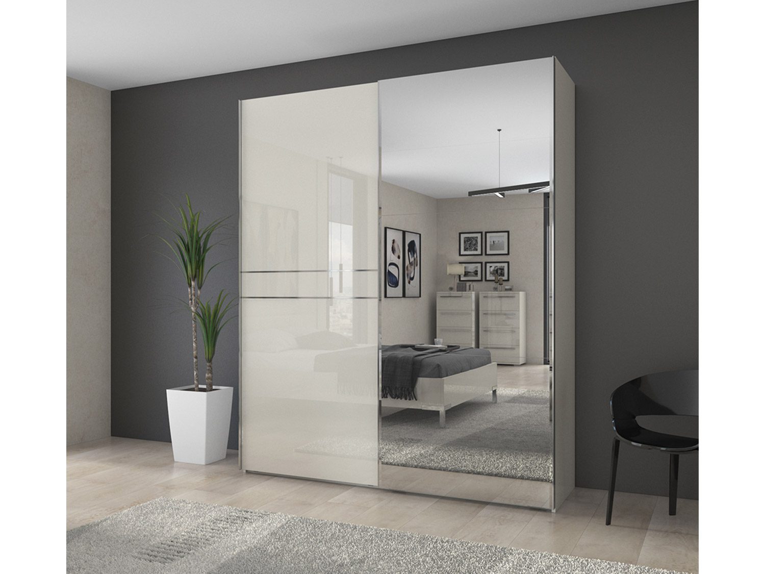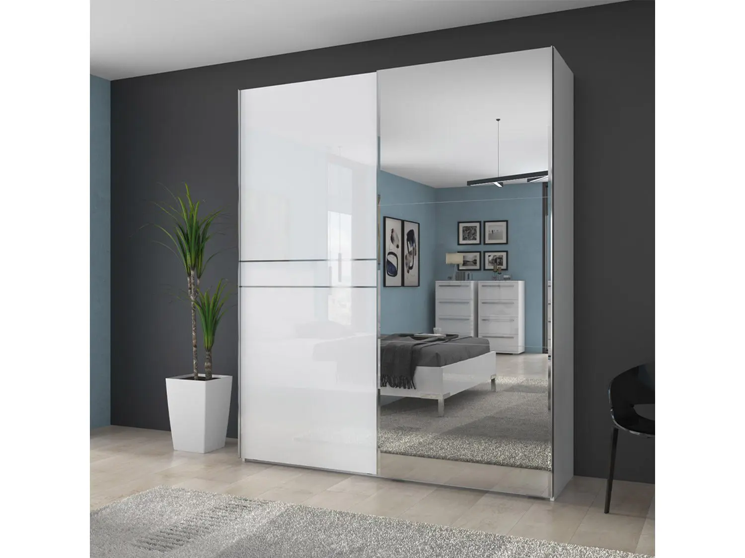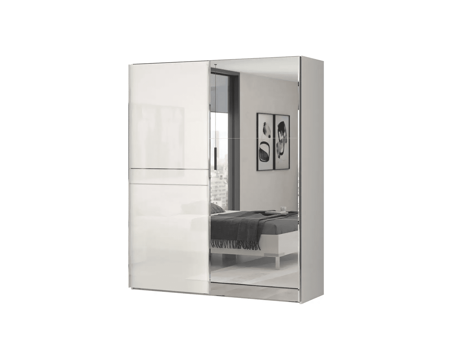 – Dvokrilni klizni plakar sa ogledalom na jednom krilu
