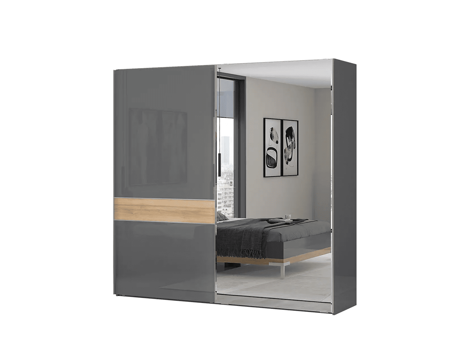 – Dvokrilni klizni plakar sa ogledalom na jednom krilu