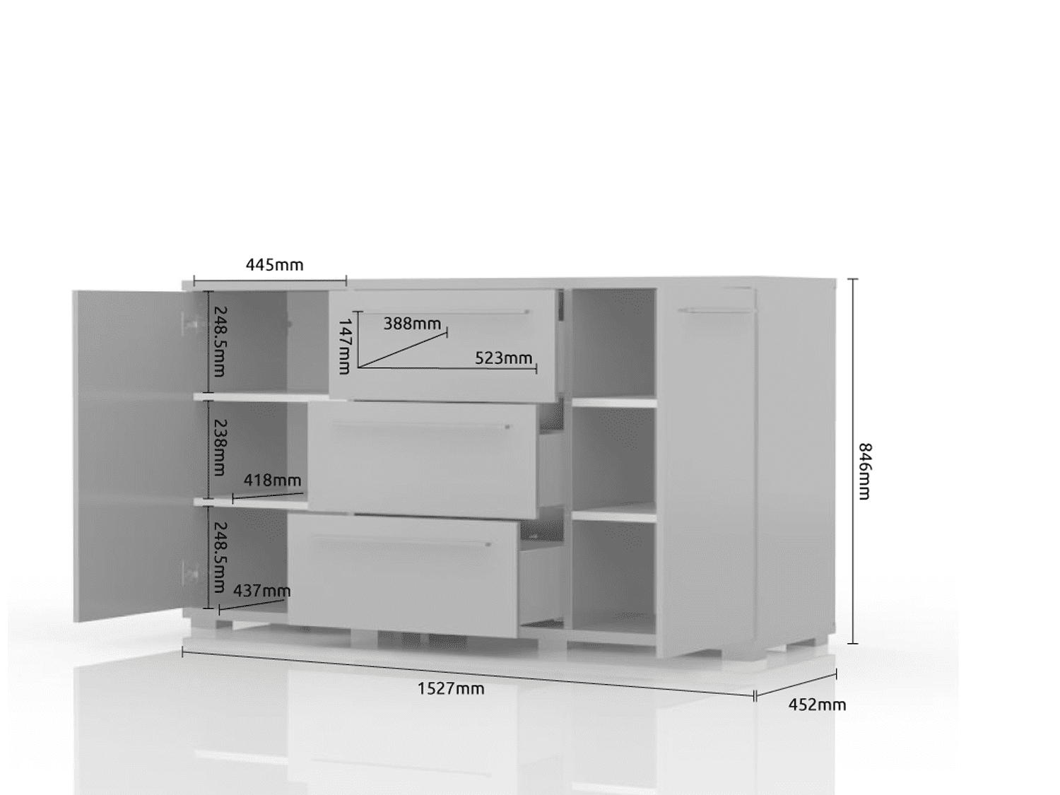 ŠIRINA: 153 cmVISINA: 85 cmDUBINA: 45 cm