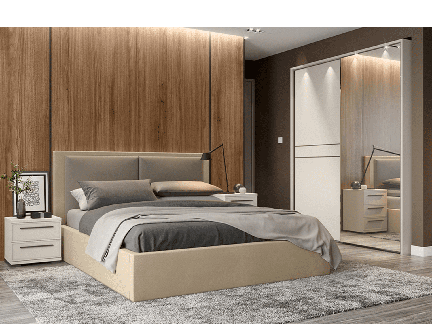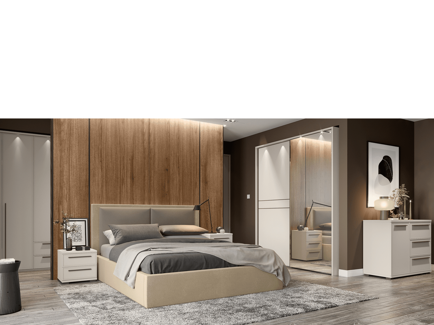 – Modularna spavaća soba OPERA lakirana soft mat UV lakom u boji Kašmir