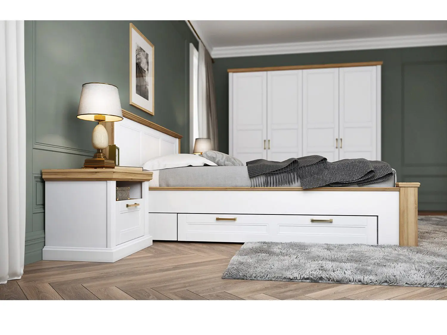 – Poseduje soft-close klizače sa usporivačima, podesive nožice za nivelisanje na neravnim površinama, dekorativne ručice