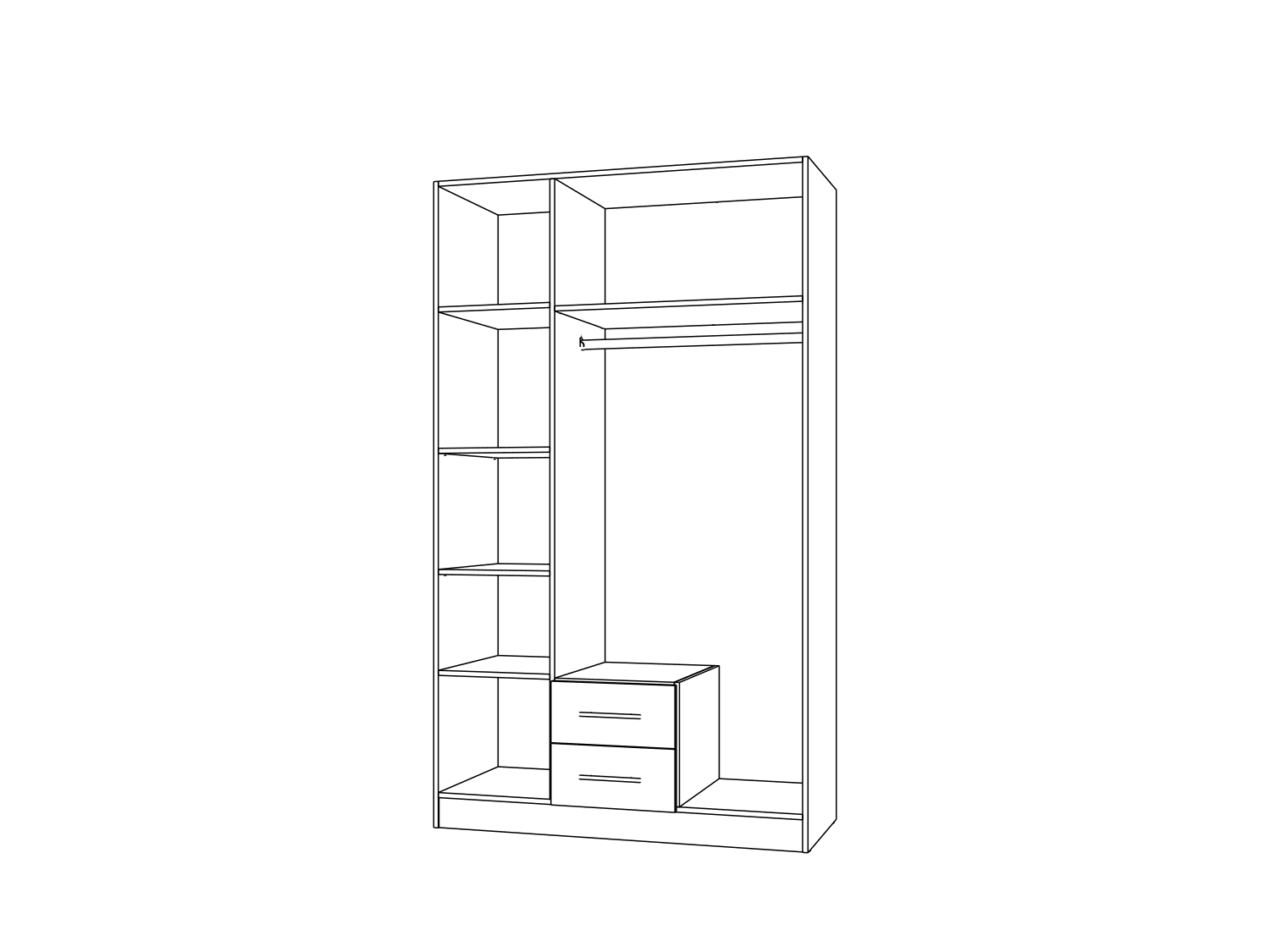 – Poseduje pet unutrašnjih polica, garderobnu šipku i dve fioke