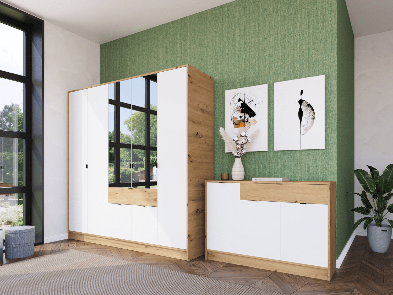 – Kombinacija drvo dekora artisan hrast/premium belo
