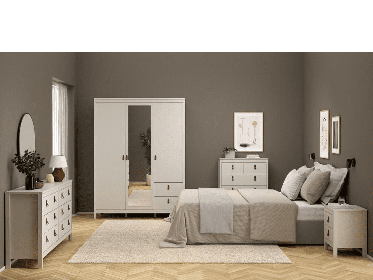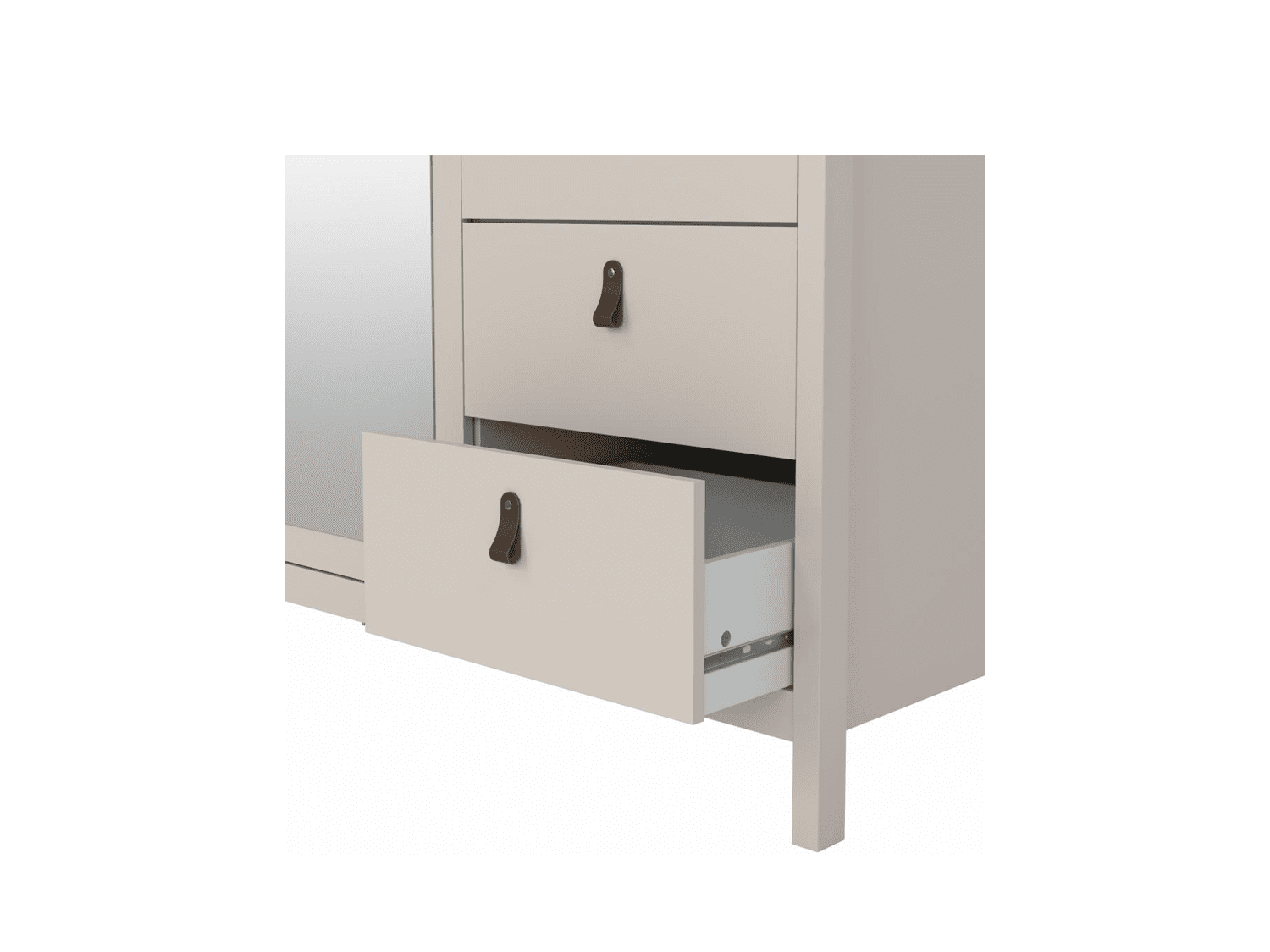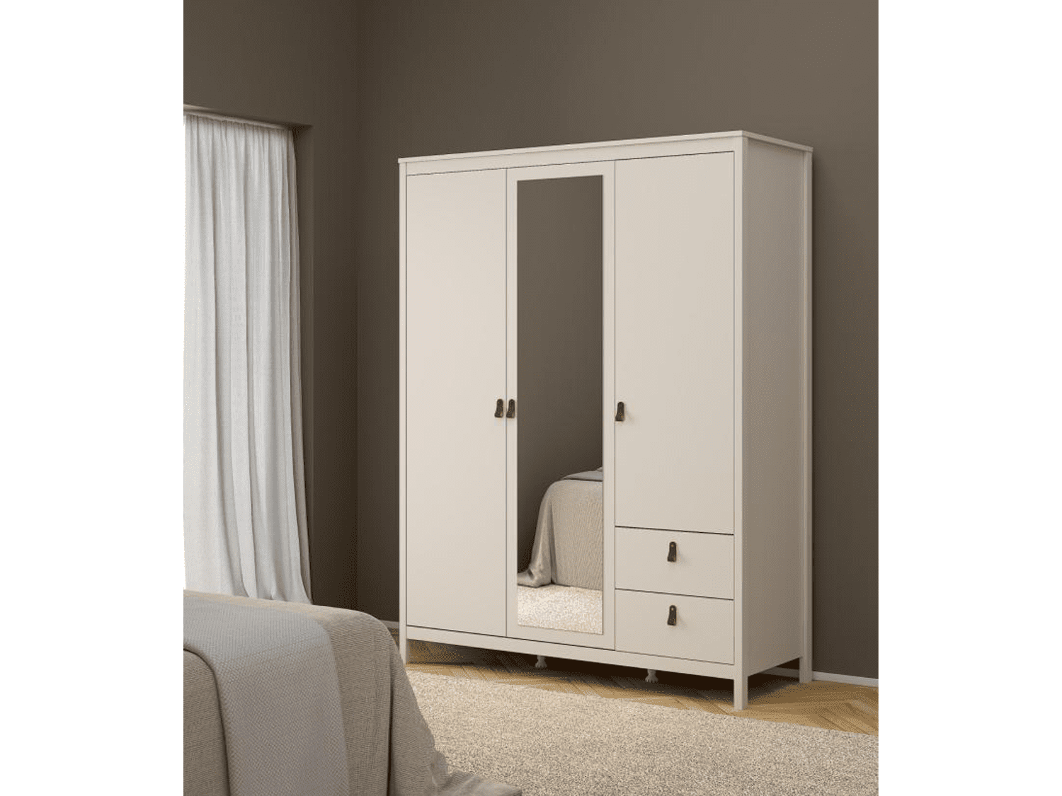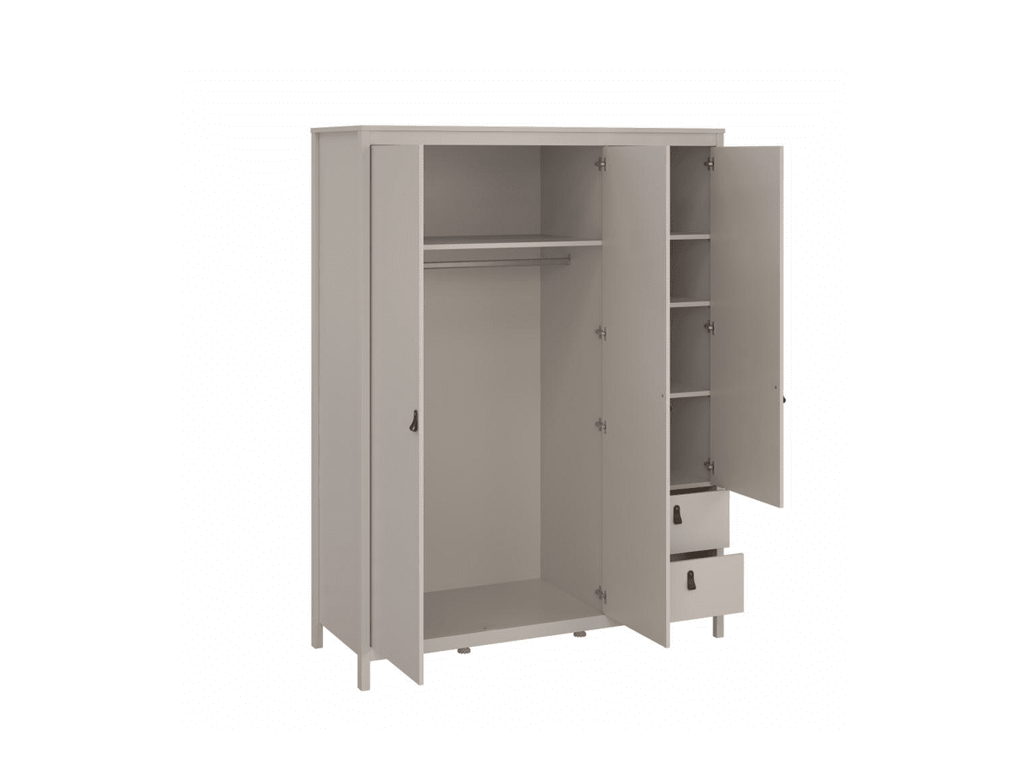 – Poseduje ogledalo, dekorativne metalne ručice, jednu garderobnu šipku, četiri unutrašnje police i dve fioke