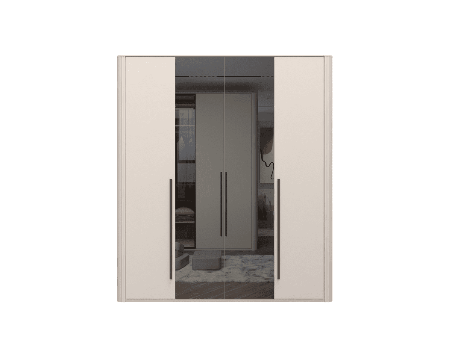 – Četvorokrilni plakar sa kombinacijom UV soft mat frontova u dekoru Kašmir i krila sa ogledalom