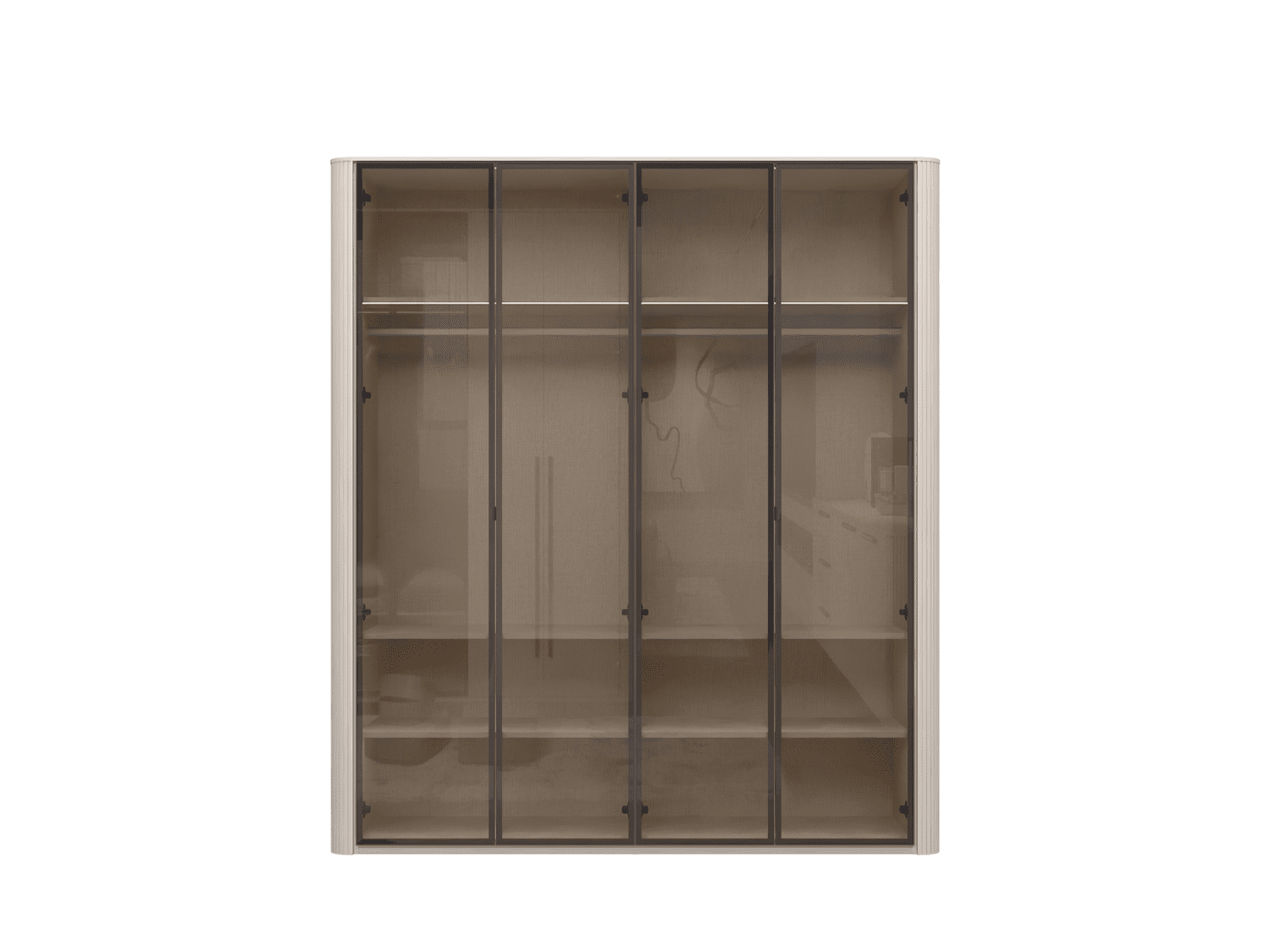 – Stakleni frontovi od parsol brown stakla (4 mm) sa aluminijumskim ramom u dekoru Midnight Copper