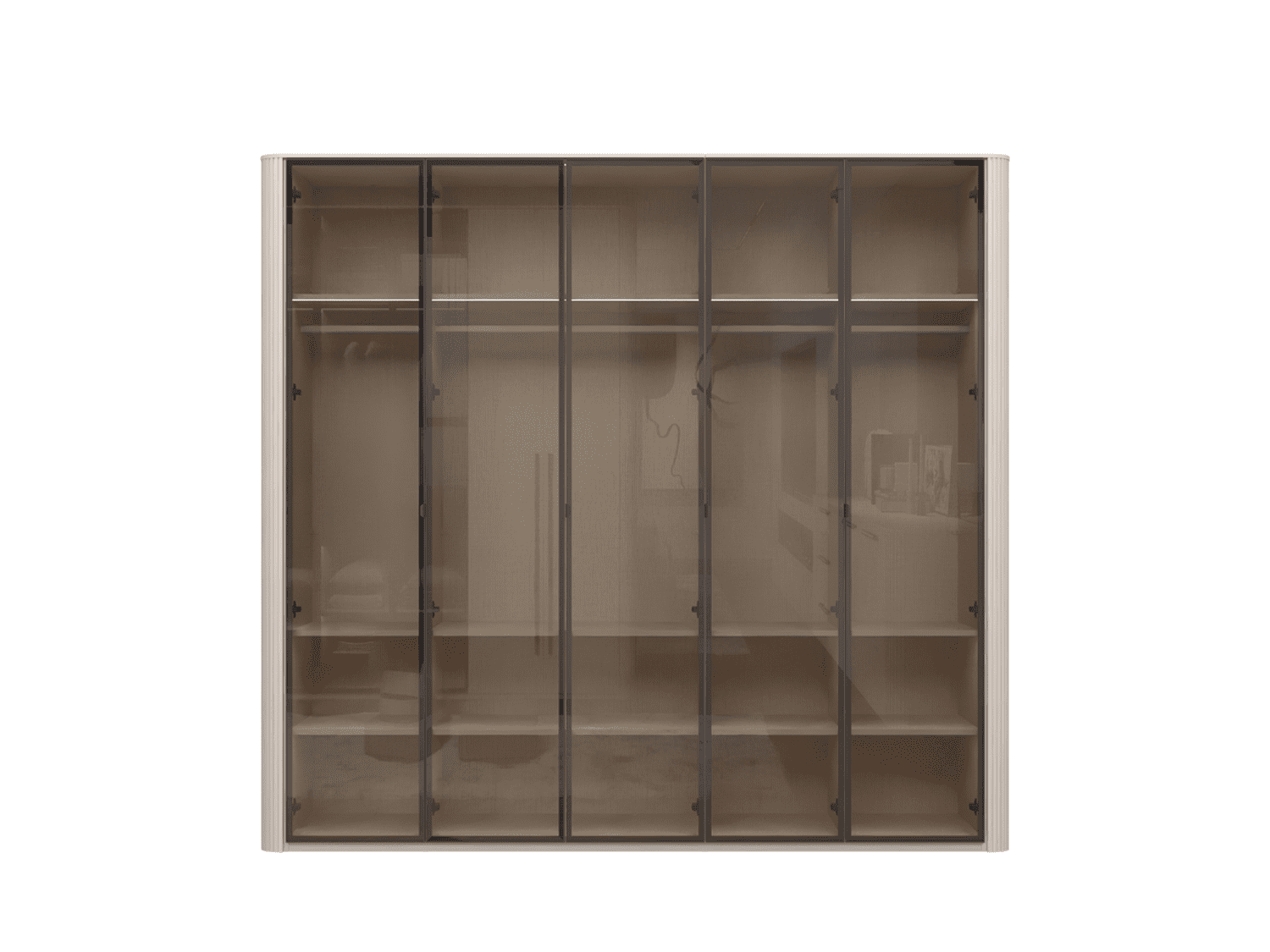 – Stakleni frontovi sa aluminijumskim ramom i parsol brown staklom 4 mm u dekoru Midnight Copper.