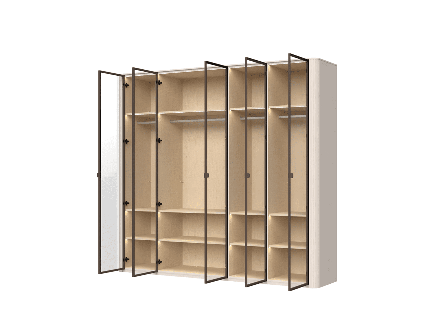 – Unutrašnjost u dekoru Textil sa funkcionalnim rasporedom faha i garderobnih šipki.