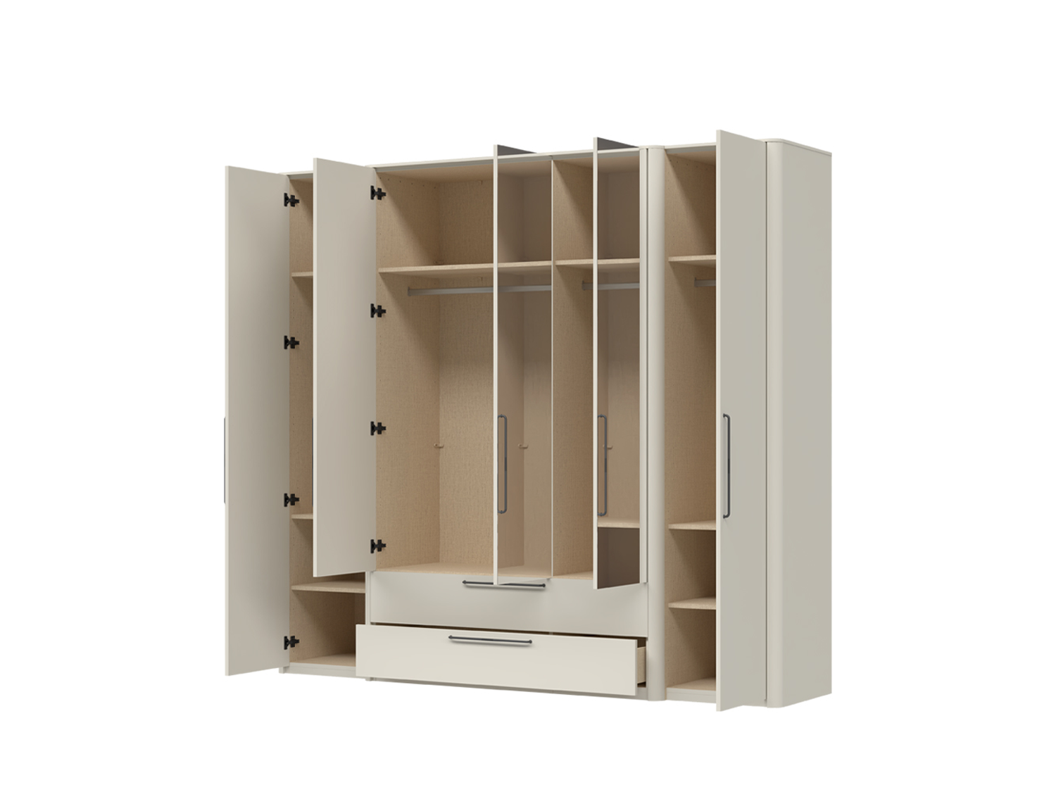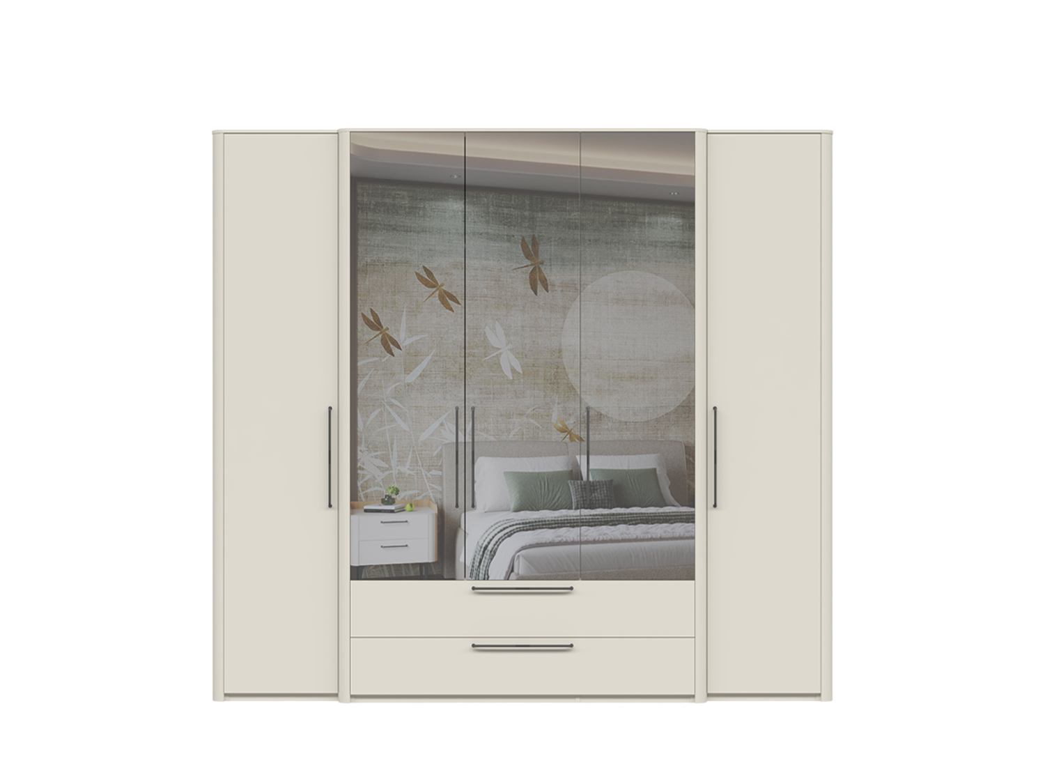 – Plakar sa 5 krila, od kojih su 3 sa ogledalima pune visine i 2 praktične fioke