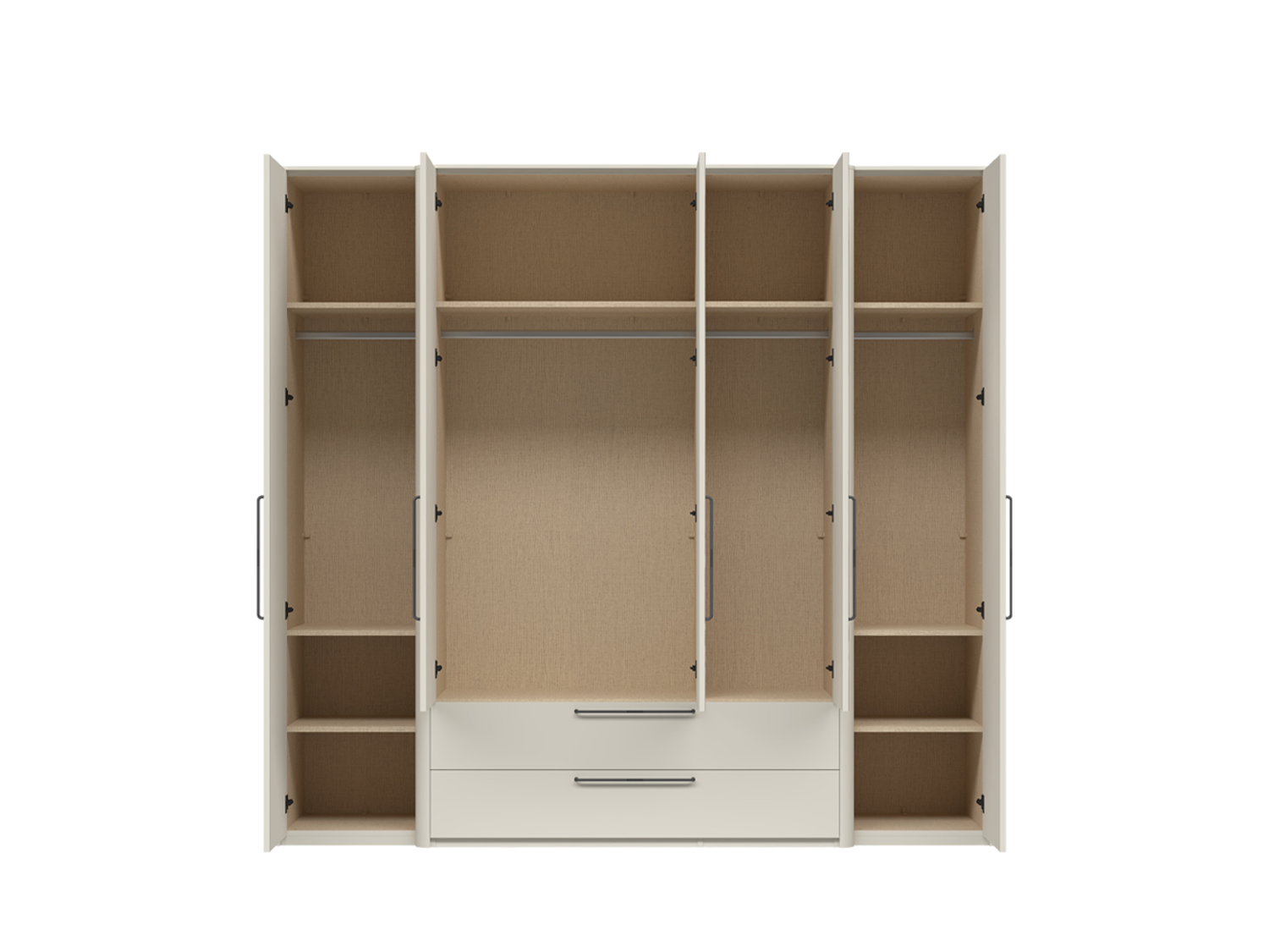 – Unutrašnjost sa 1 većim i 7 manjih fahova, kao i 1 dužom i 3 kraće garderobne šipke