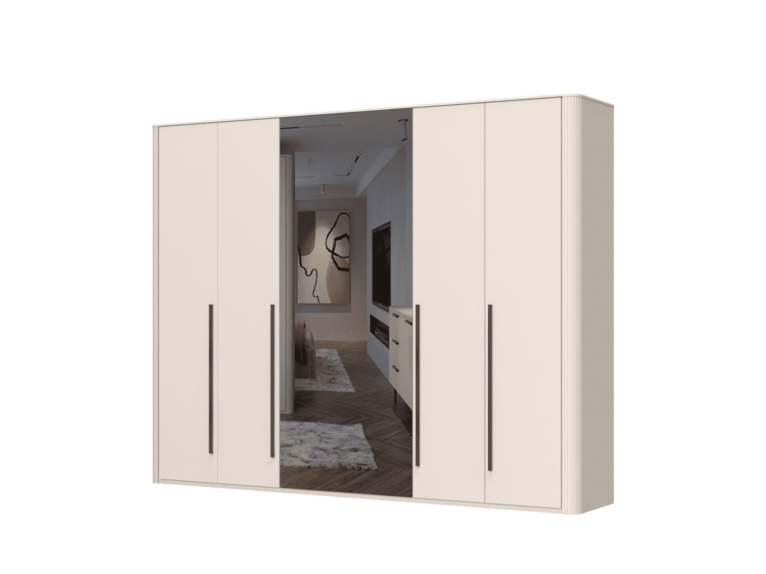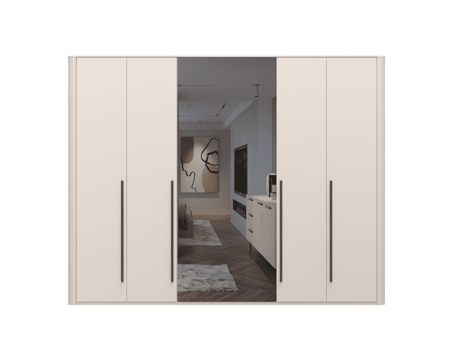 – Kombinacija punih frontova u dekoru Kašmir i krila sa ogledalom za dodatnu funkcionalnost i vizuelno proširenje prostora