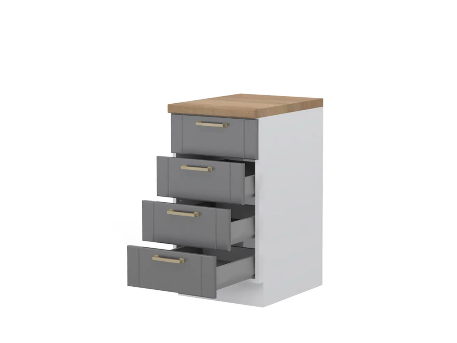 -Radni kuhinjski element sa četiri metal-box fioke sa punim izvlačenjem iz kolekcije Tara , čija je nosivost do 30 kilograma