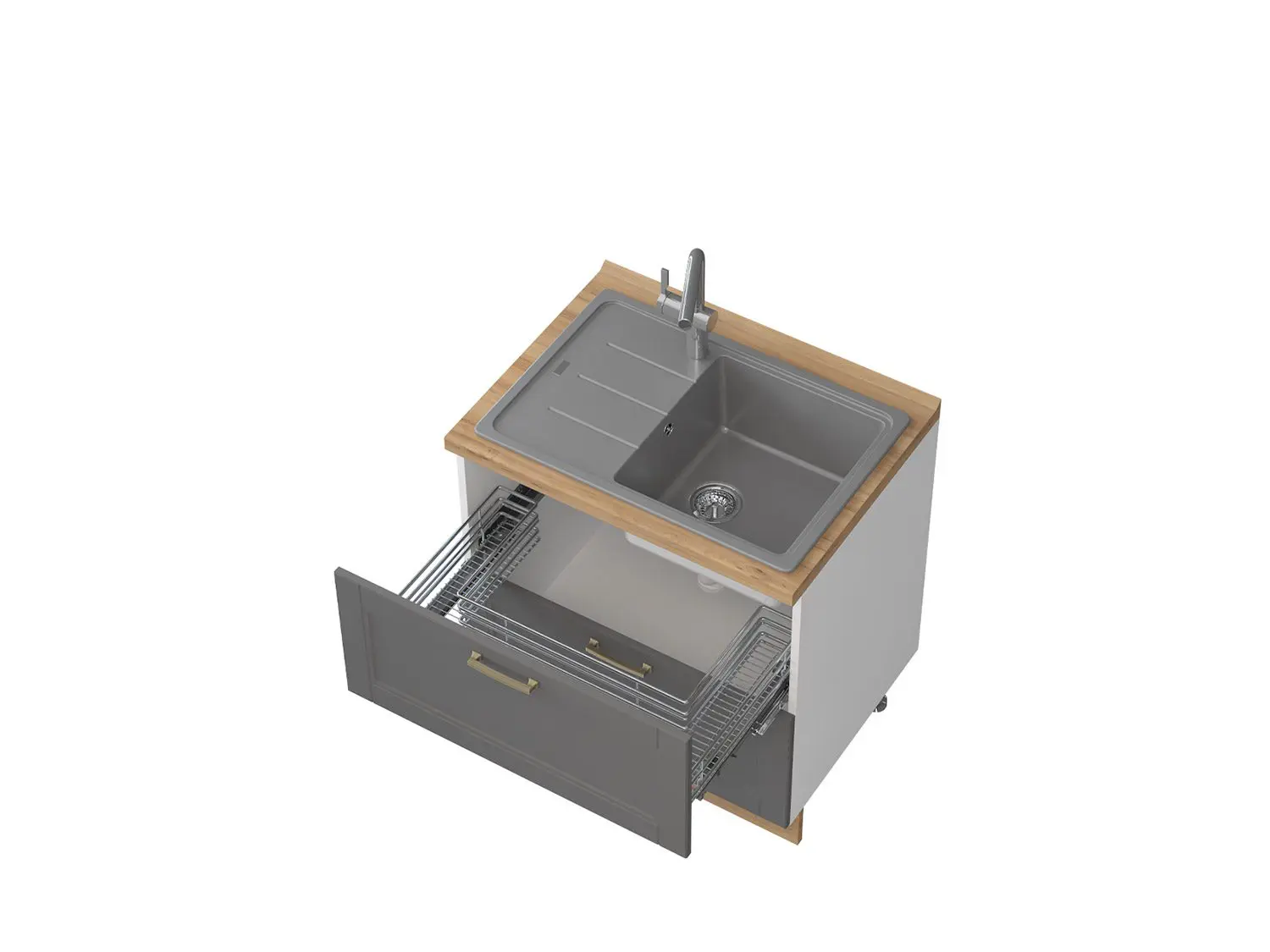 -Radni kuhinjski element iz kolekcije Tara sa dve fioke sa punim izvlačenjem . Ugradnjom ovog elementa omogućuje se maksimalno iskorišćenje prostora ispod sudopere.