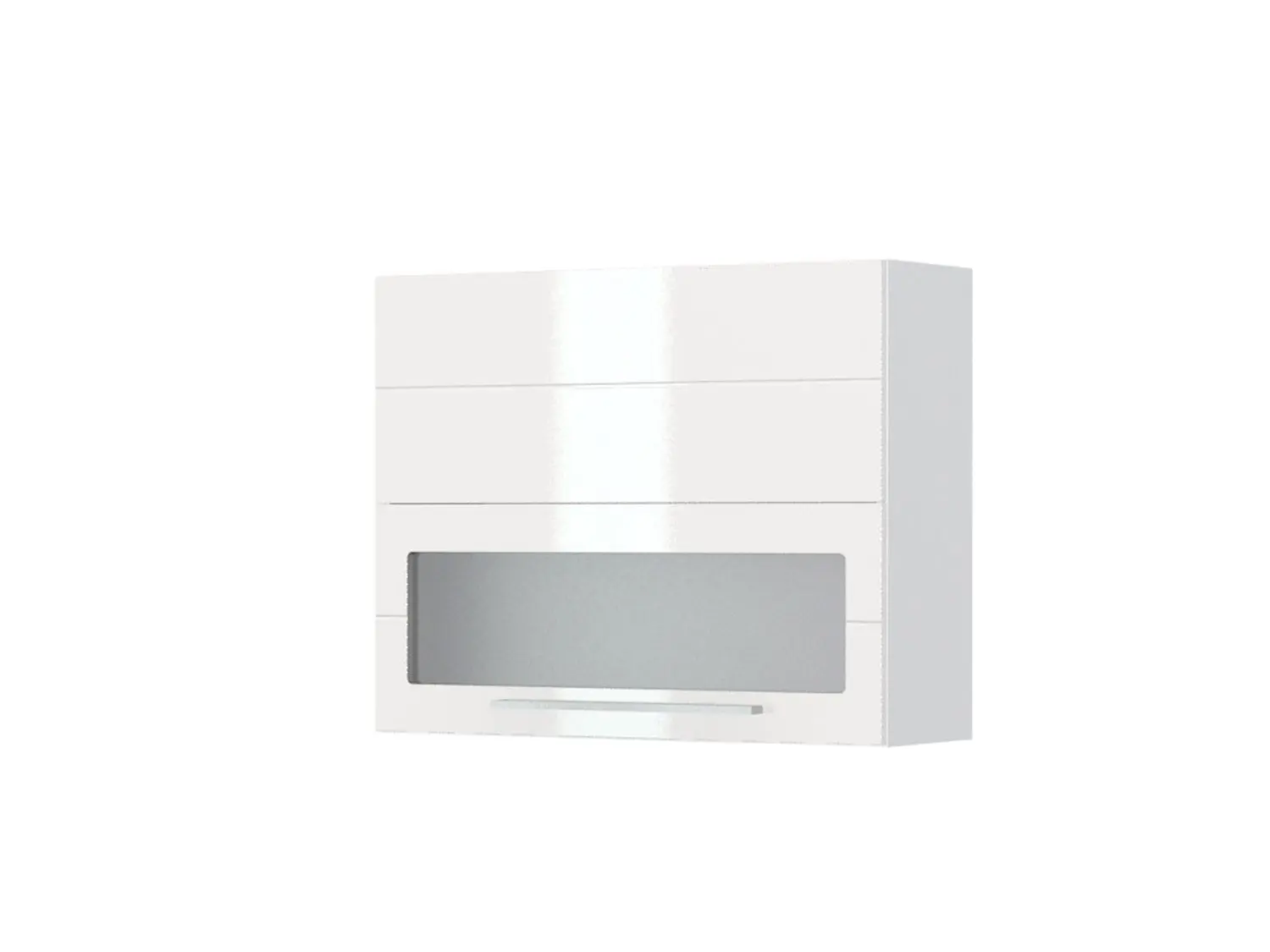 -Viseći kuhinjski element sa jednim staklenim i jednim punim krilom, sa preklopnim otvaranjem